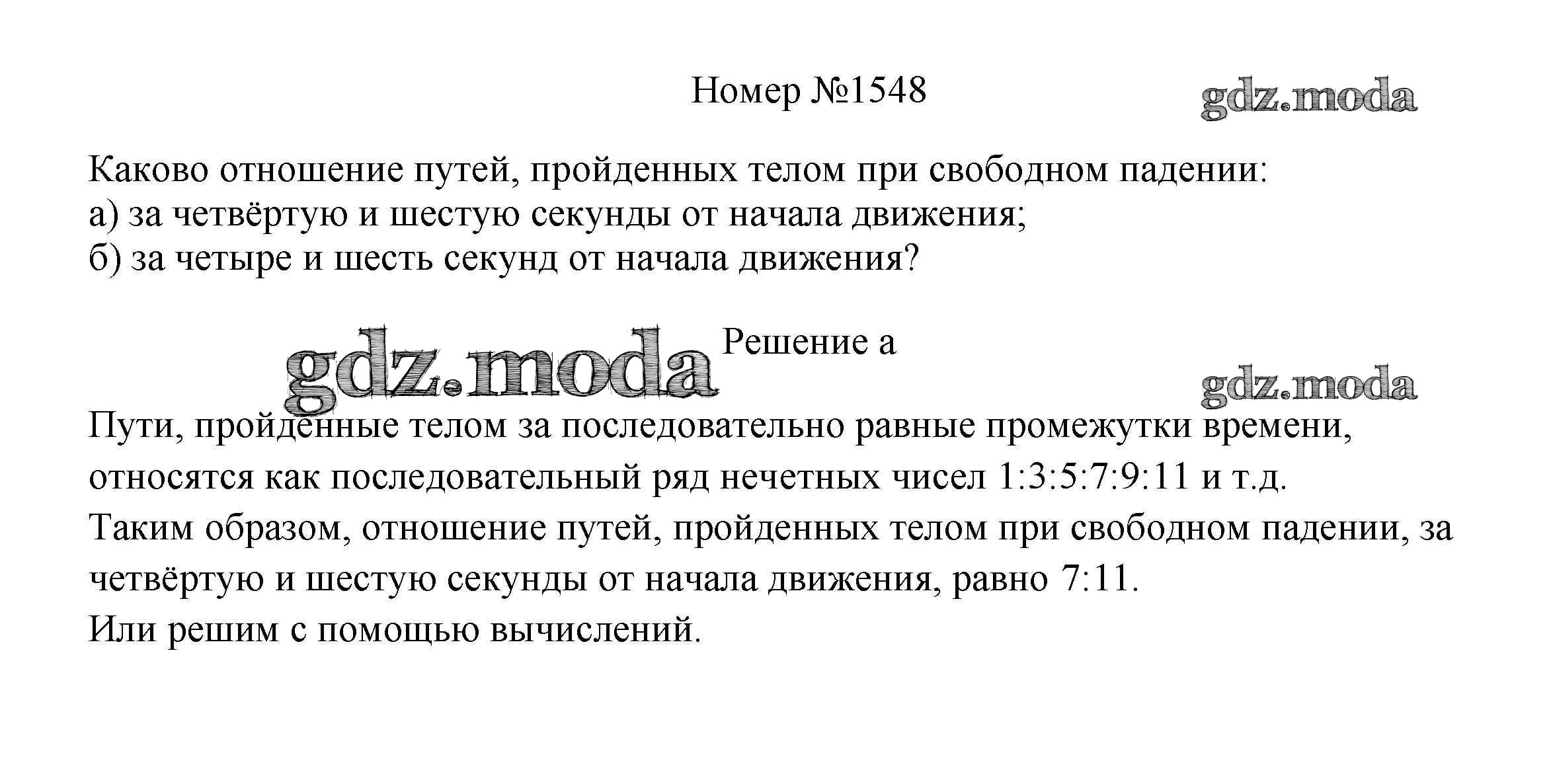 ОТВЕТ на задание № 1548 Сборник вопросов и задач по Физике 7-9 класс Марон Вертикаль