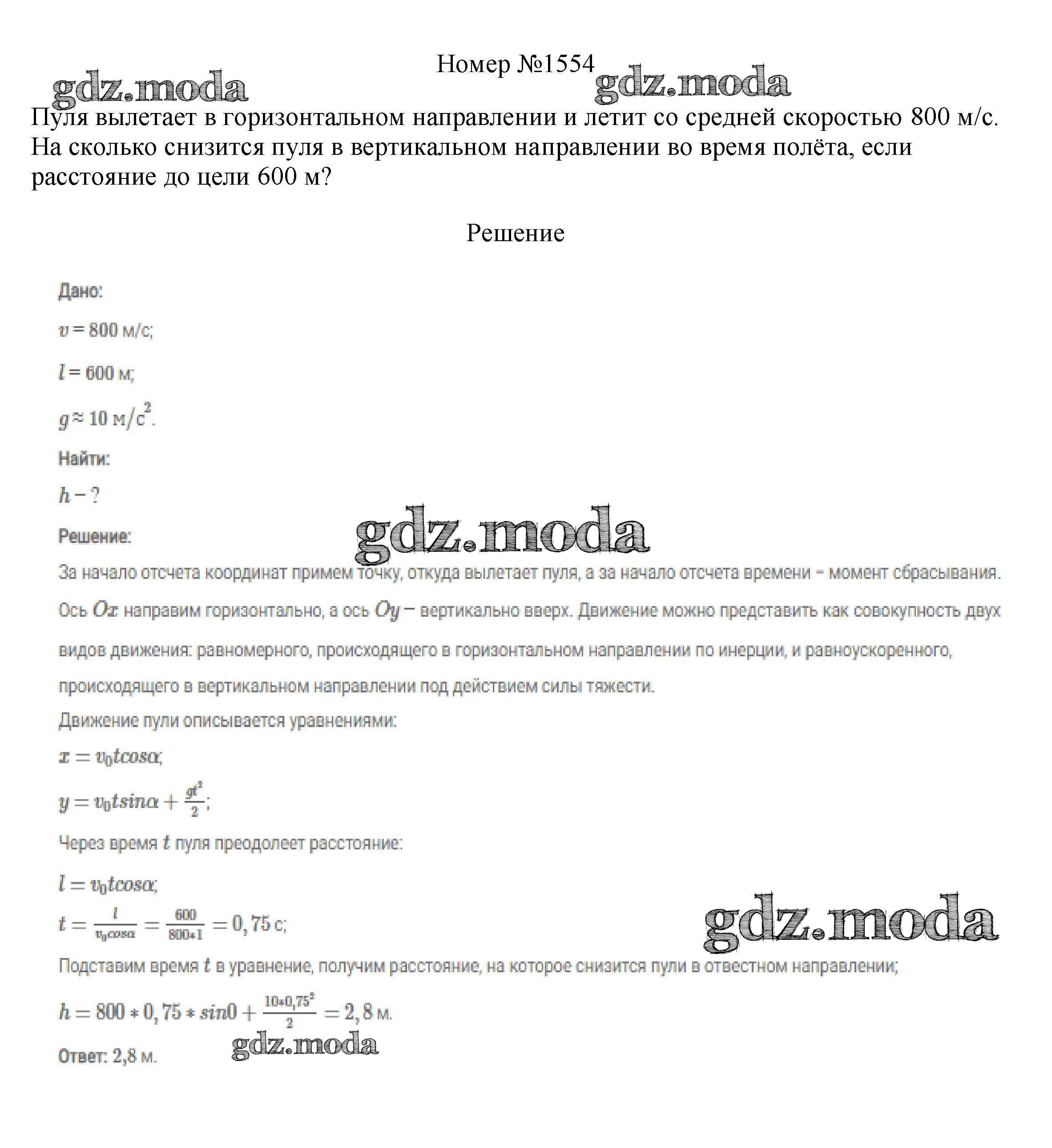 ОТВЕТ на задание № 1554 Сборник вопросов и задач по Физике 7-9 класс Марон Вертикаль