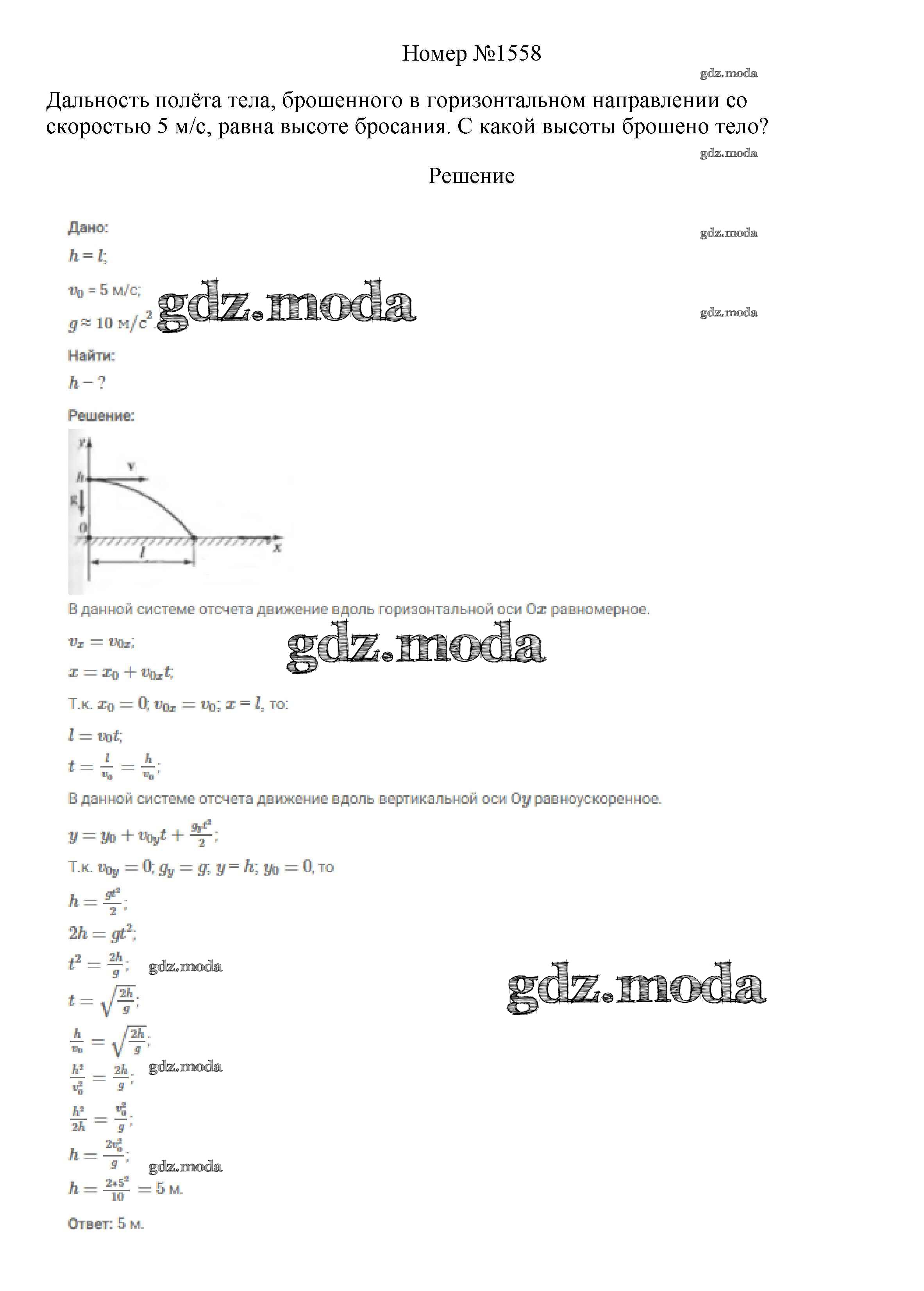 ОТВЕТ на задание № 1558 Сборник вопросов и задач по Физике 7-9 класс Марон Вертикаль