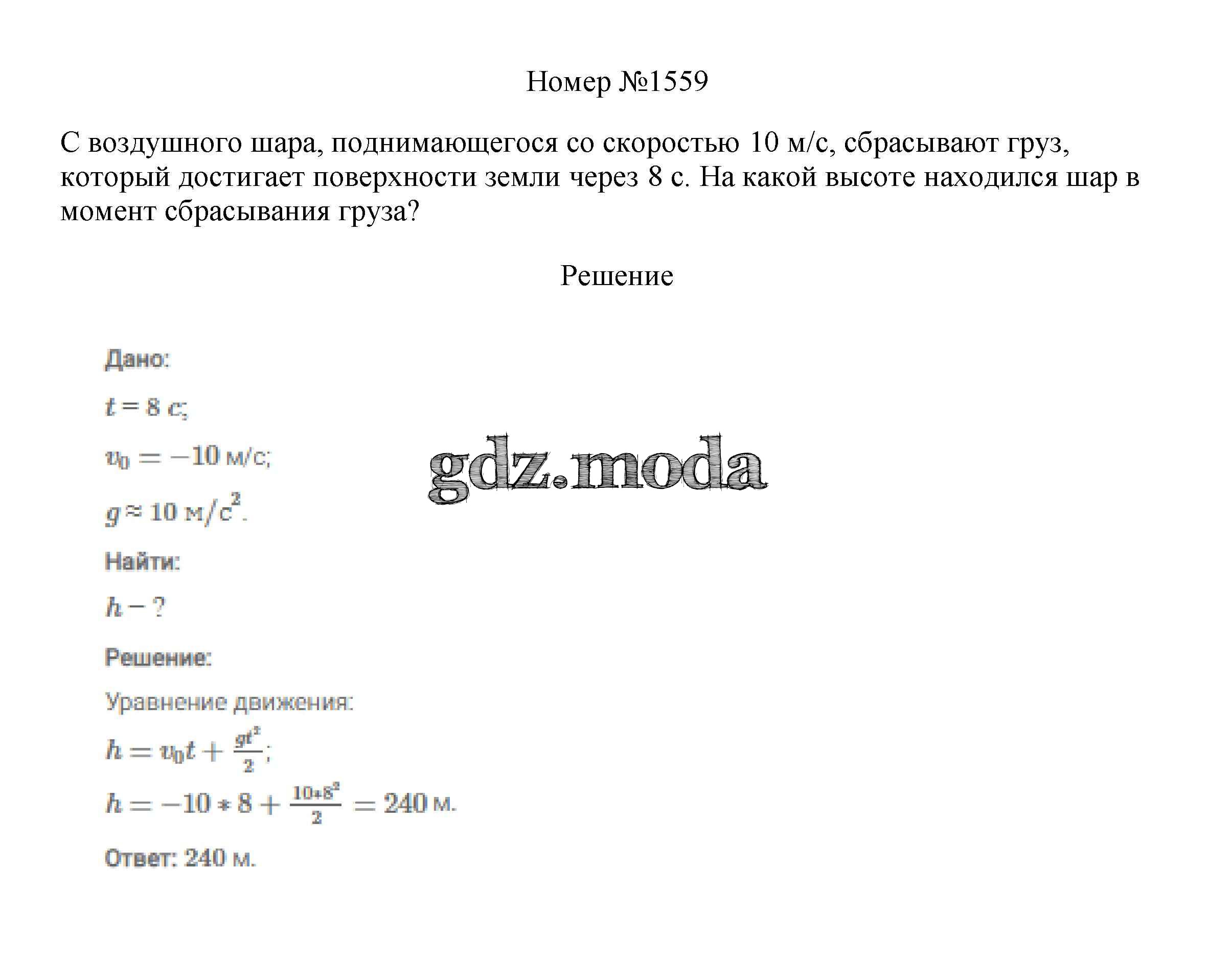 ОТВЕТ на задание № 1559 Сборник вопросов и задач по Физике 7-9 класс Марон Вертикаль
