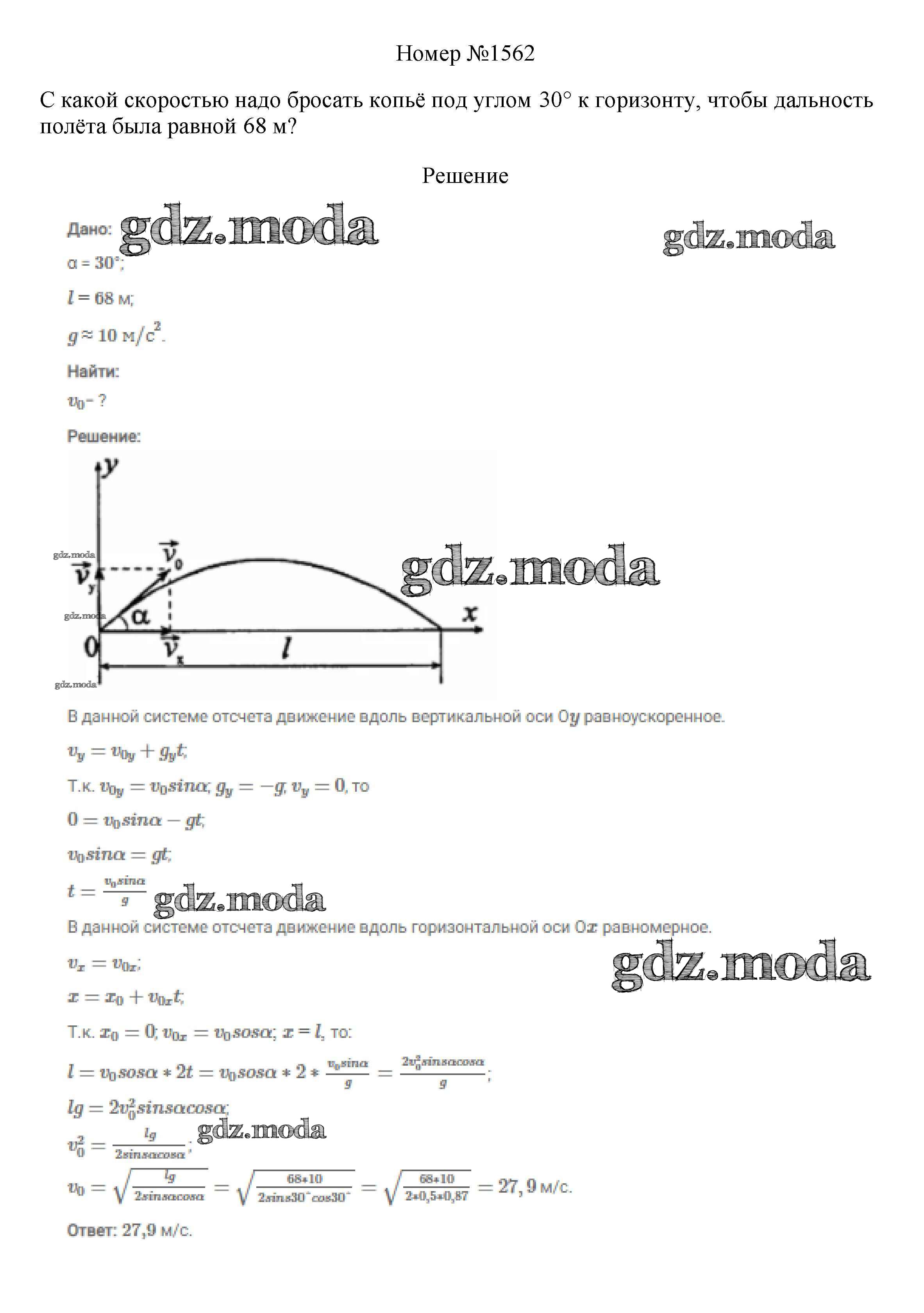 ОТВЕТ на задание № 1562 Сборник вопросов и задач по Физике 7-9 класс Марон Вертикаль