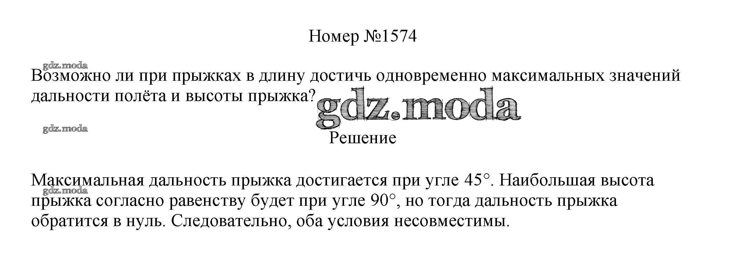 ОТВЕТ на задание № 1574 Сборник вопросов и задач по Физике 7-9 класс Марон Вертикаль