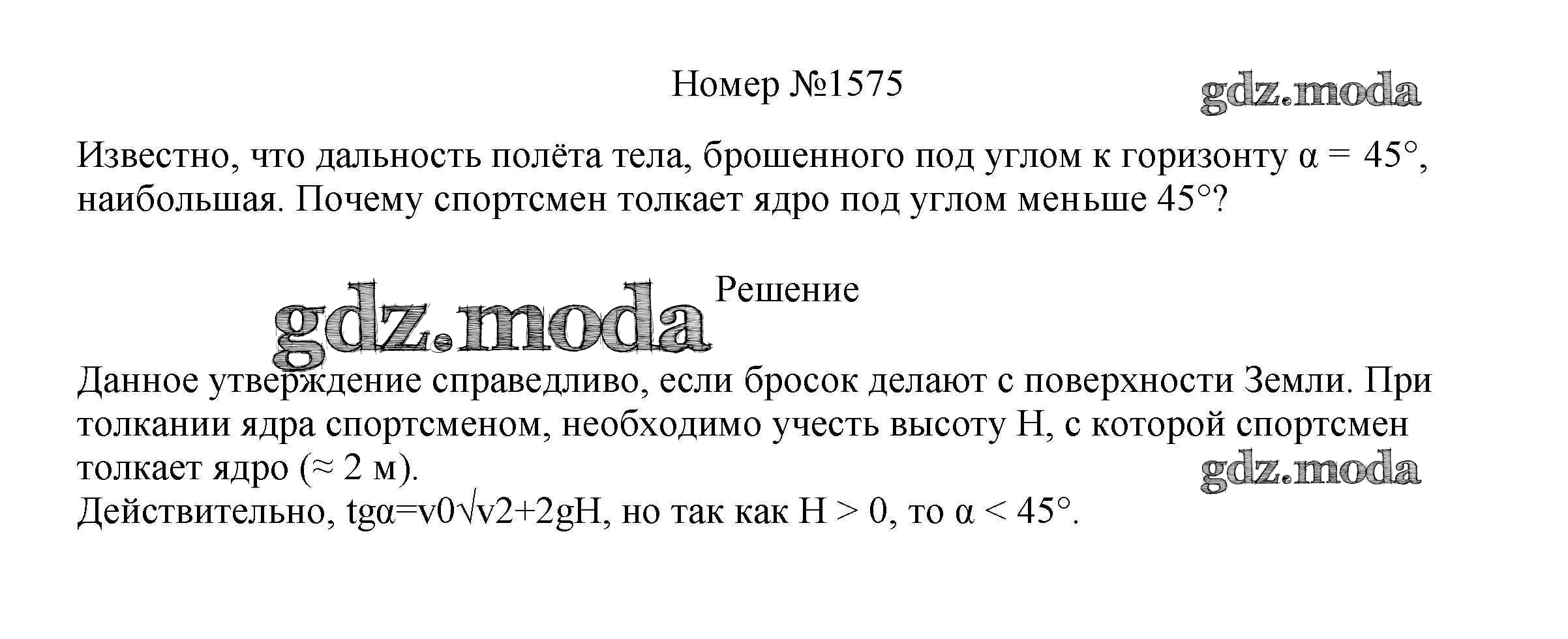 ОТВЕТ на задание № 1575 Сборник вопросов и задач по Физике 7-9 класс Марон Вертикаль