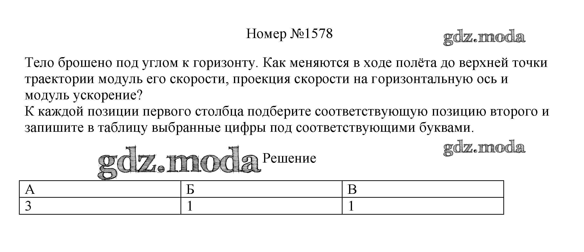 ОТВЕТ на задание № 1578 Сборник вопросов и задач по Физике 7-9 класс Марон Вертикаль