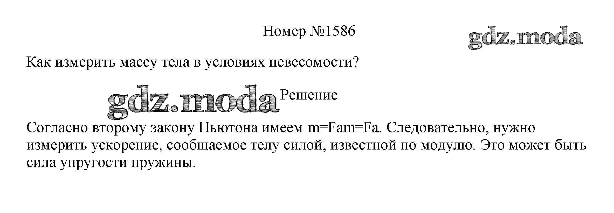 ОТВЕТ на задание № 1586 Сборник вопросов и задач по Физике 7-9 класс Марон Вертикаль