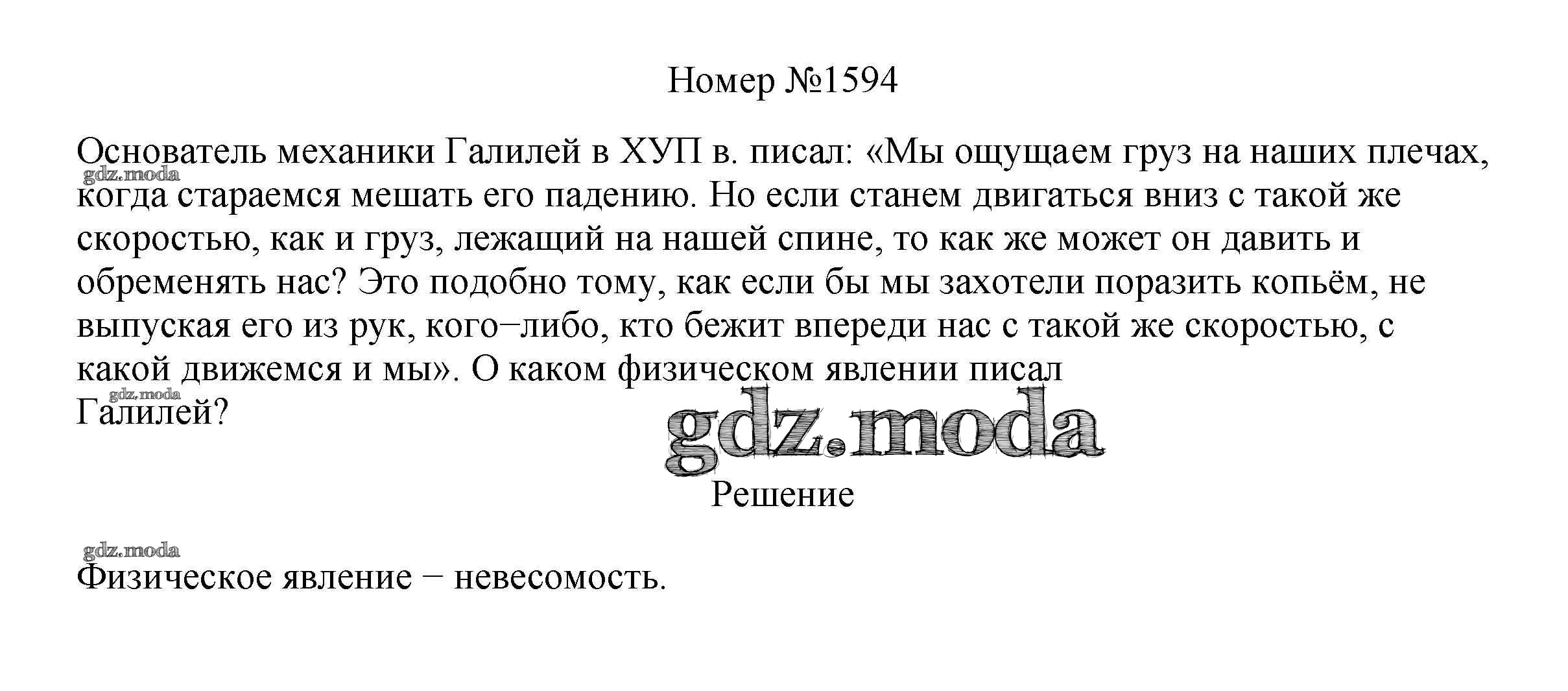 ГДЗ решение к заданию № 1594 Физика 7-9 классы сборник вопросов и задач Марон А.Е. Дрофа 2013 ФГОС бесплатно на гдз.мода!