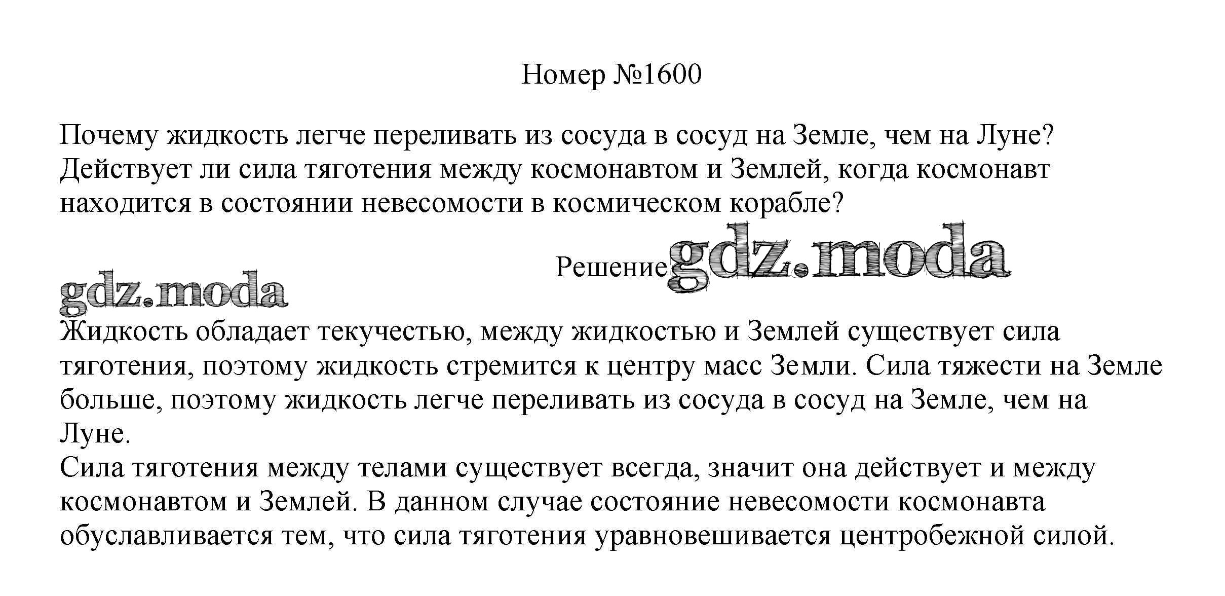 ГДЗ решение к заданию № 1600 Физика 7-9 классы сборник вопросов и задач Марон А.Е. Дрофа 2013 ФГОС бесплатно на гдз.мода!