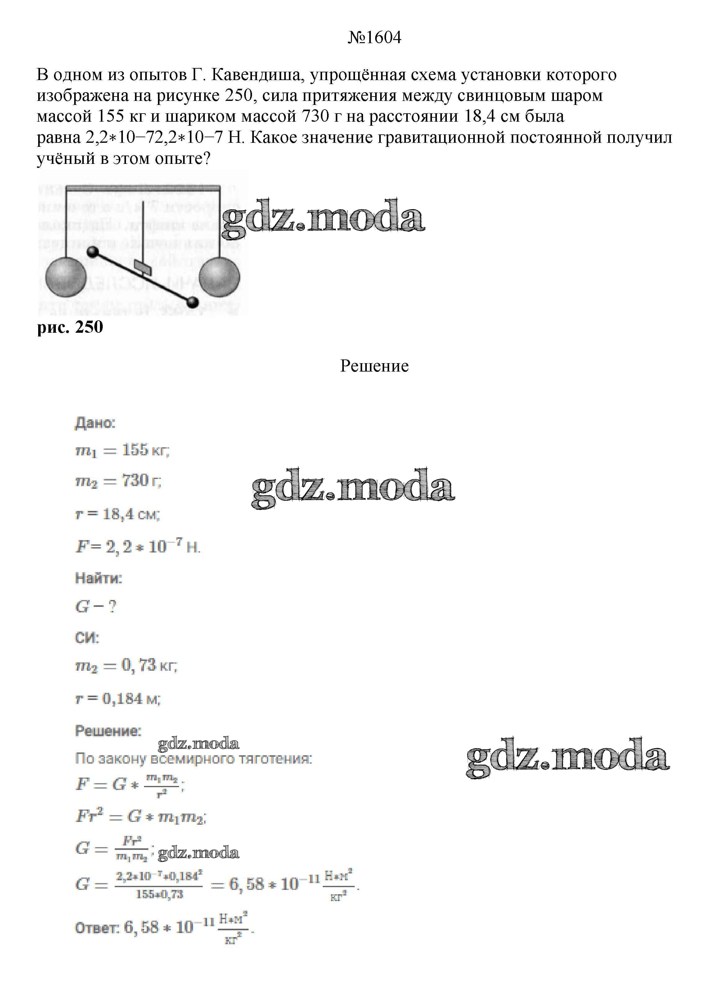 ГДЗ решение к заданию № 1604 Физика 7-9 классы сборник вопросов и задач Марон А.Е. Дрофа 2013 ФГОС бесплатно на гдз.мода!
