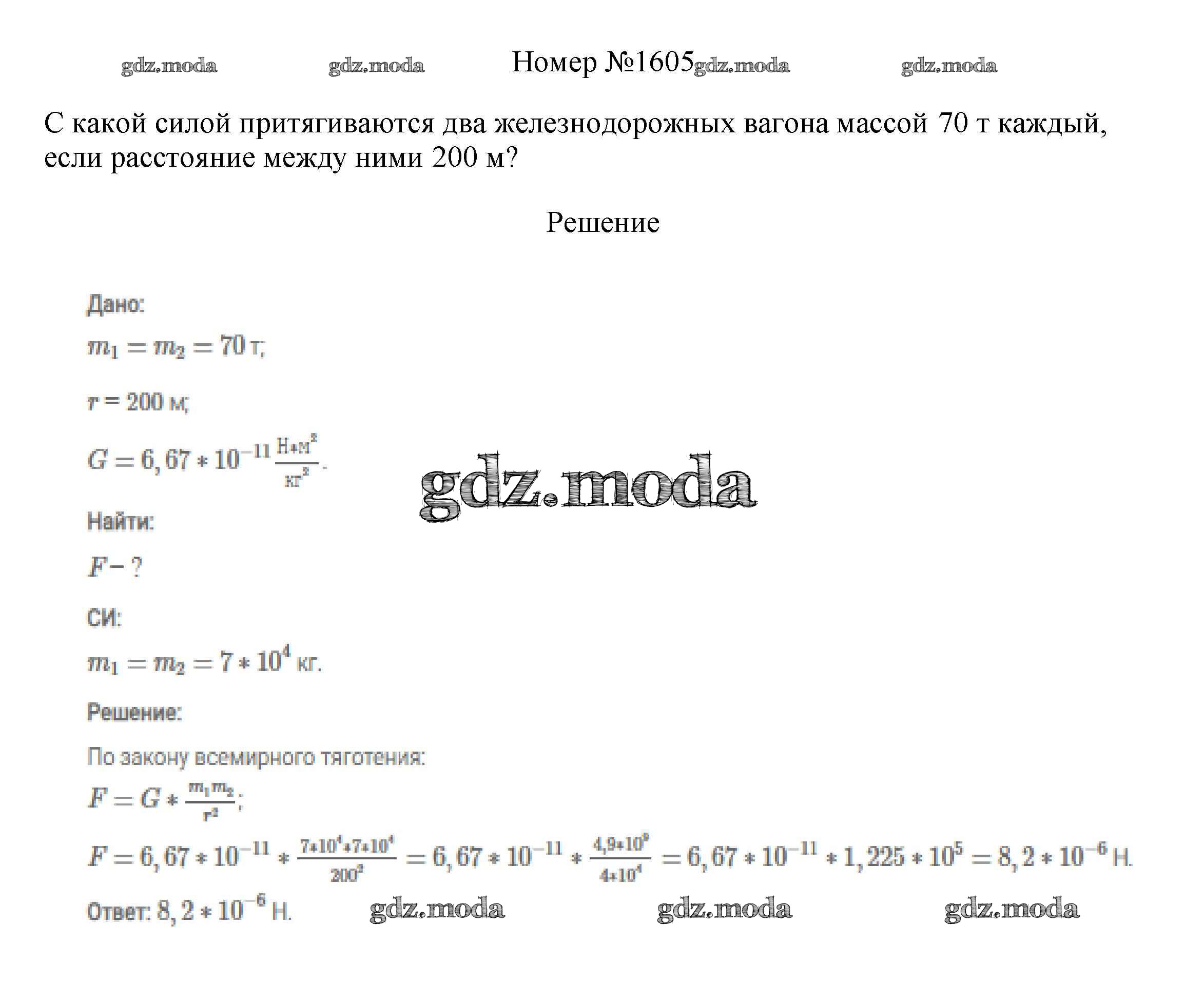 ОТВЕТ на задание № 1605 Сборник вопросов и задач по Физике 7-9 класс Марон Вертикаль