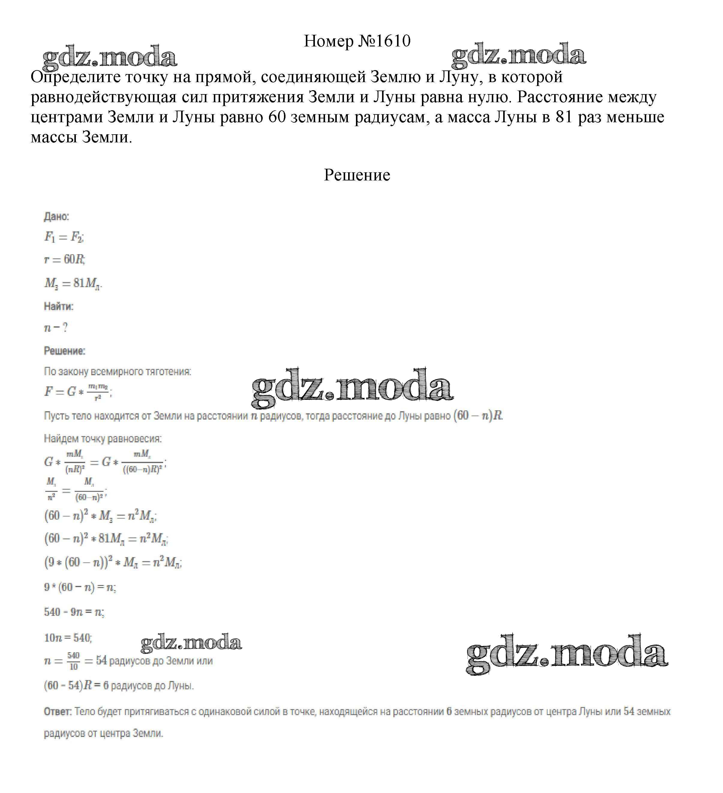 ОТВЕТ на задание № 1610 Сборник вопросов и задач по Физике 7-9 класс Марон Вертикаль