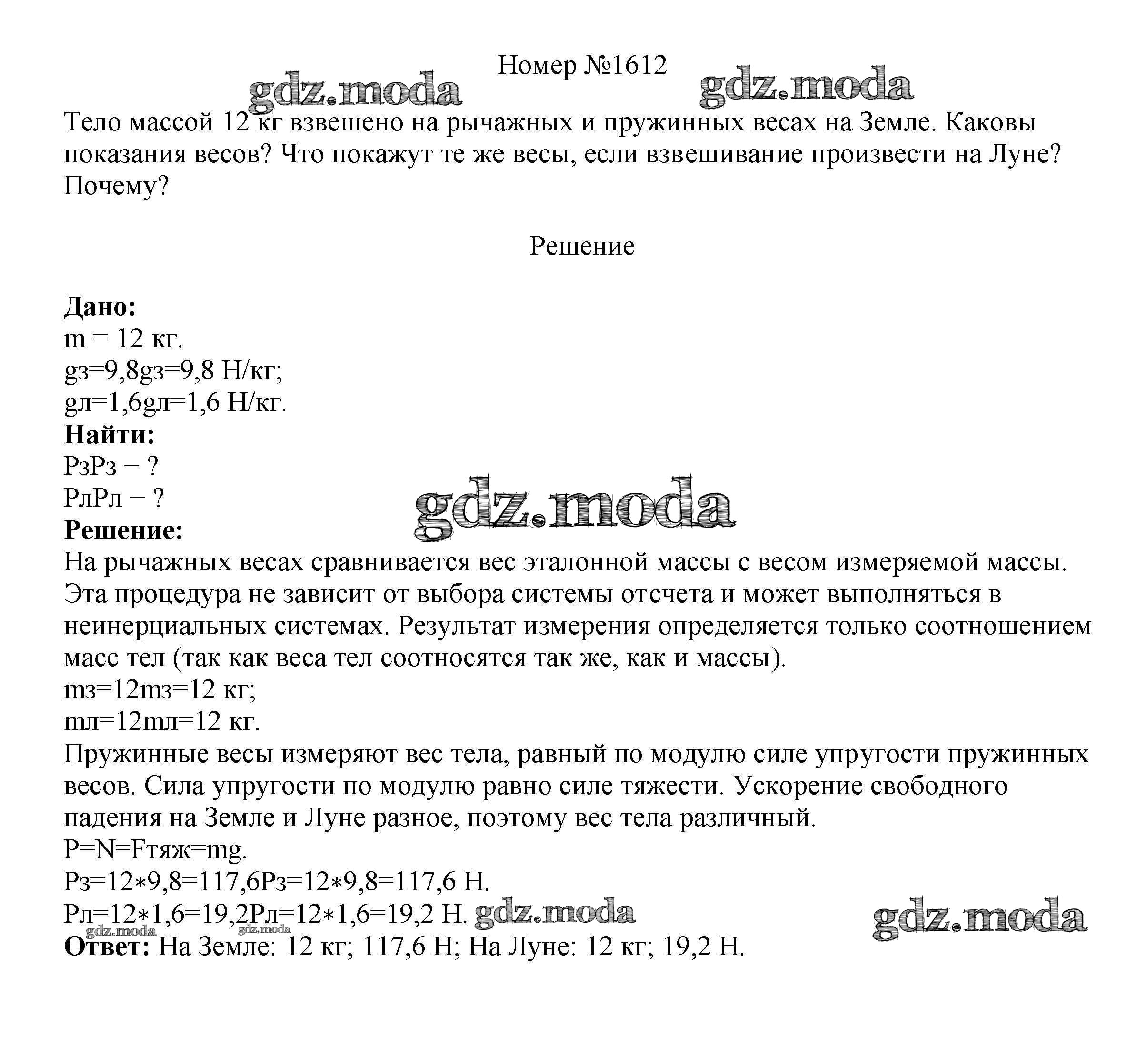 ОТВЕТ на задание № 1612 Сборник вопросов и задач по Физике 7-9 класс Марон Вертикаль