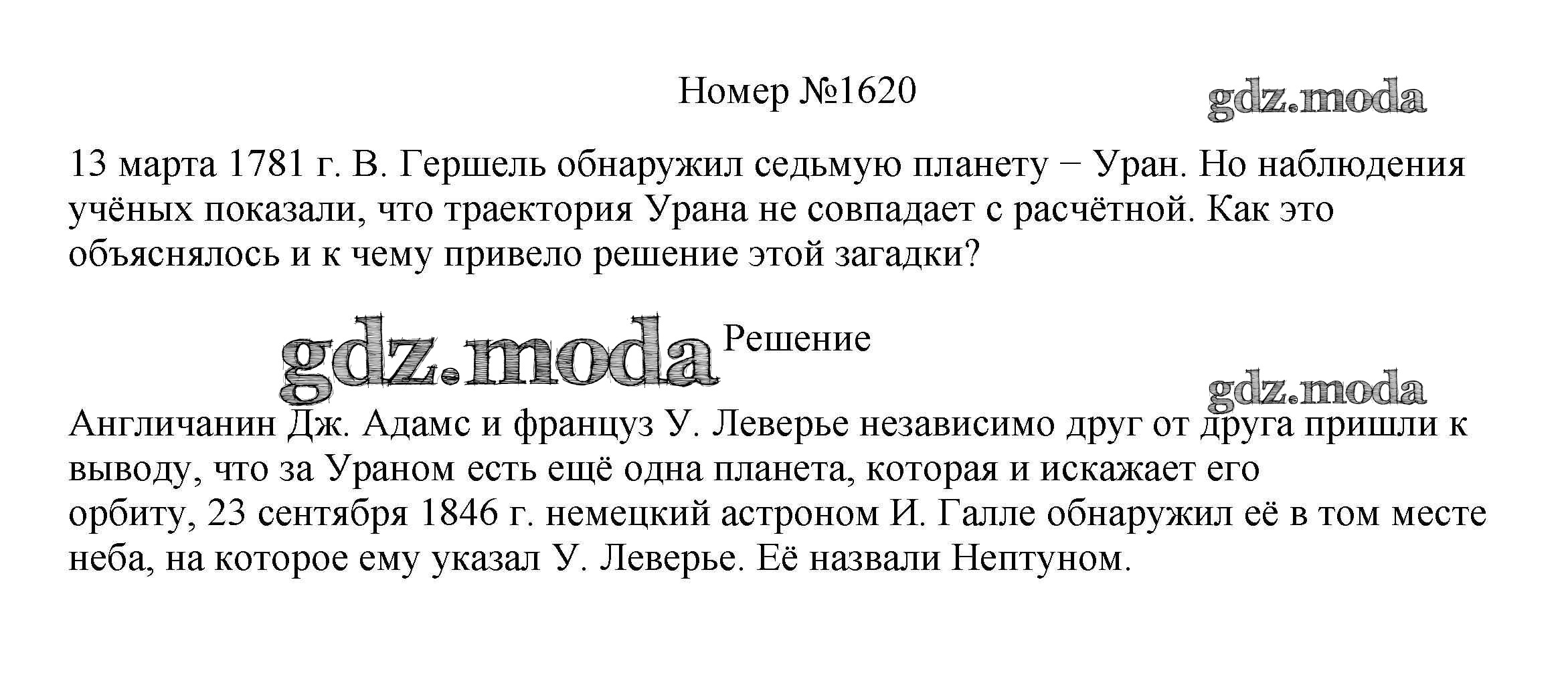 ГДЗ решение к заданию № 1620 Физика 7-9 классы сборник вопросов и задач Марон А.Е. Дрофа 2013 ФГОС бесплатно на гдз.мода!