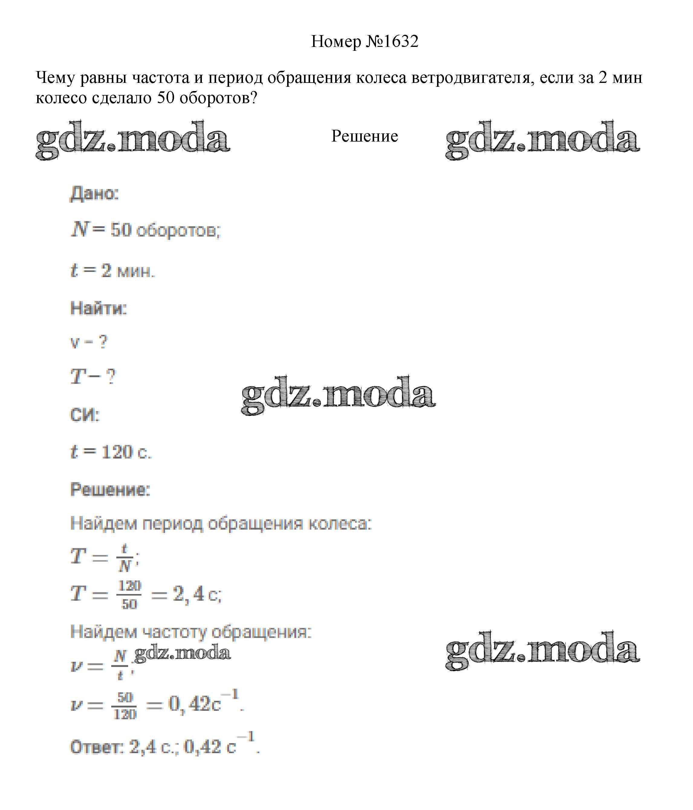 ОТВЕТ на задание № 1632 Сборник вопросов и задач по Физике 7-9 класс Марон Вертикаль
