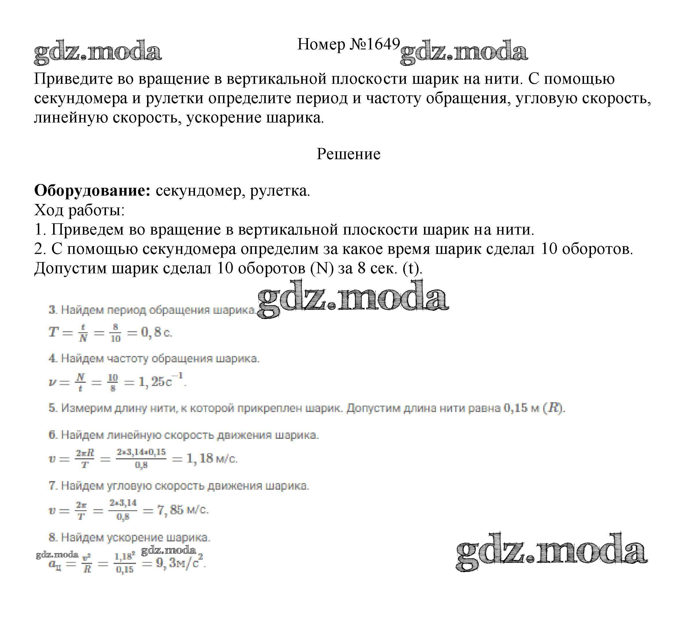 ОТВЕТ на задание № 1649 Сборник вопросов и задач по Физике 7-9 класс Марон Вертикаль