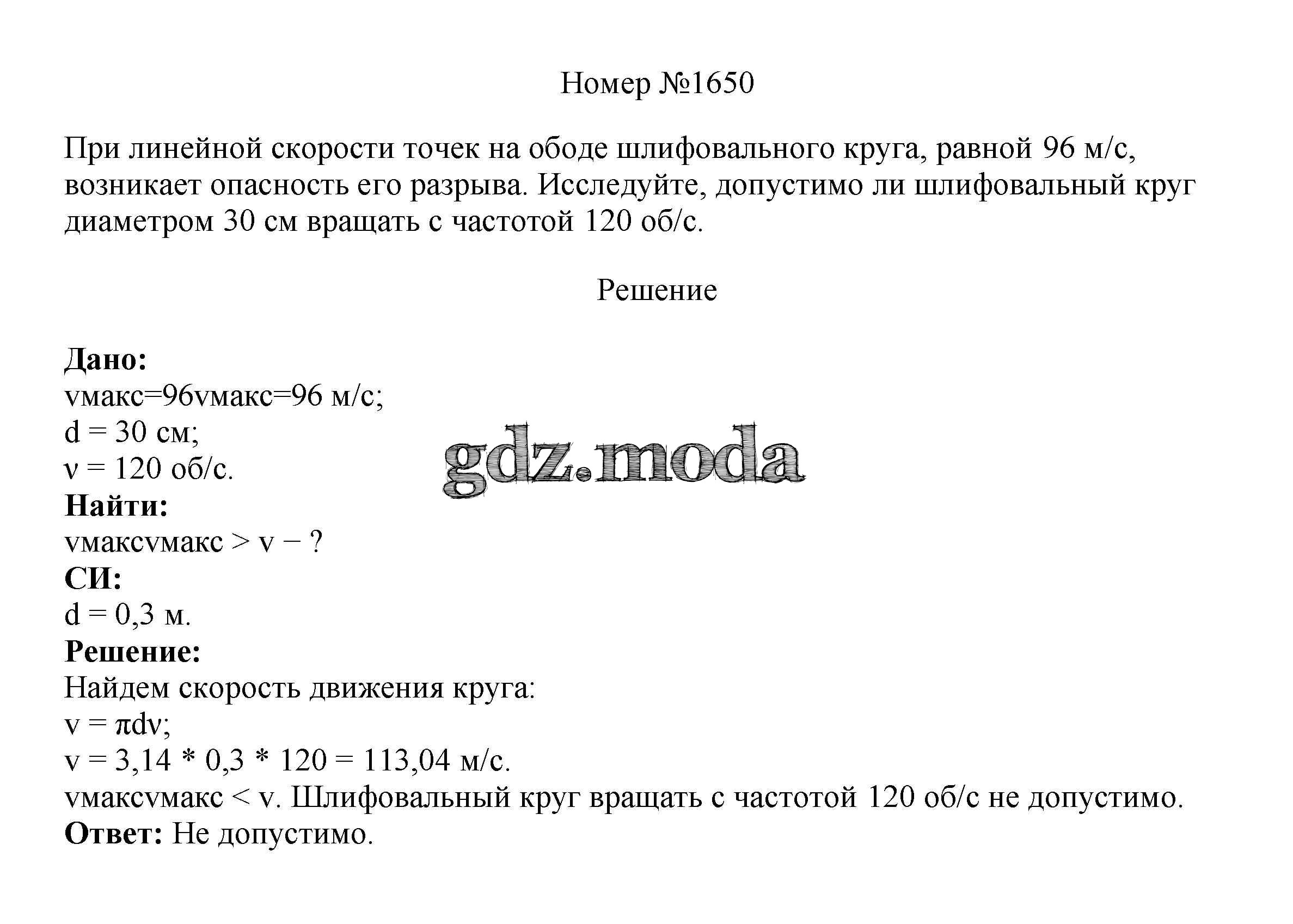 ГДЗ решение к заданию № 1650 Физика 7-9 классы сборник вопросов и задач Марон А.Е. Дрофа 2013 ФГОС бесплатно на гдз.мода!