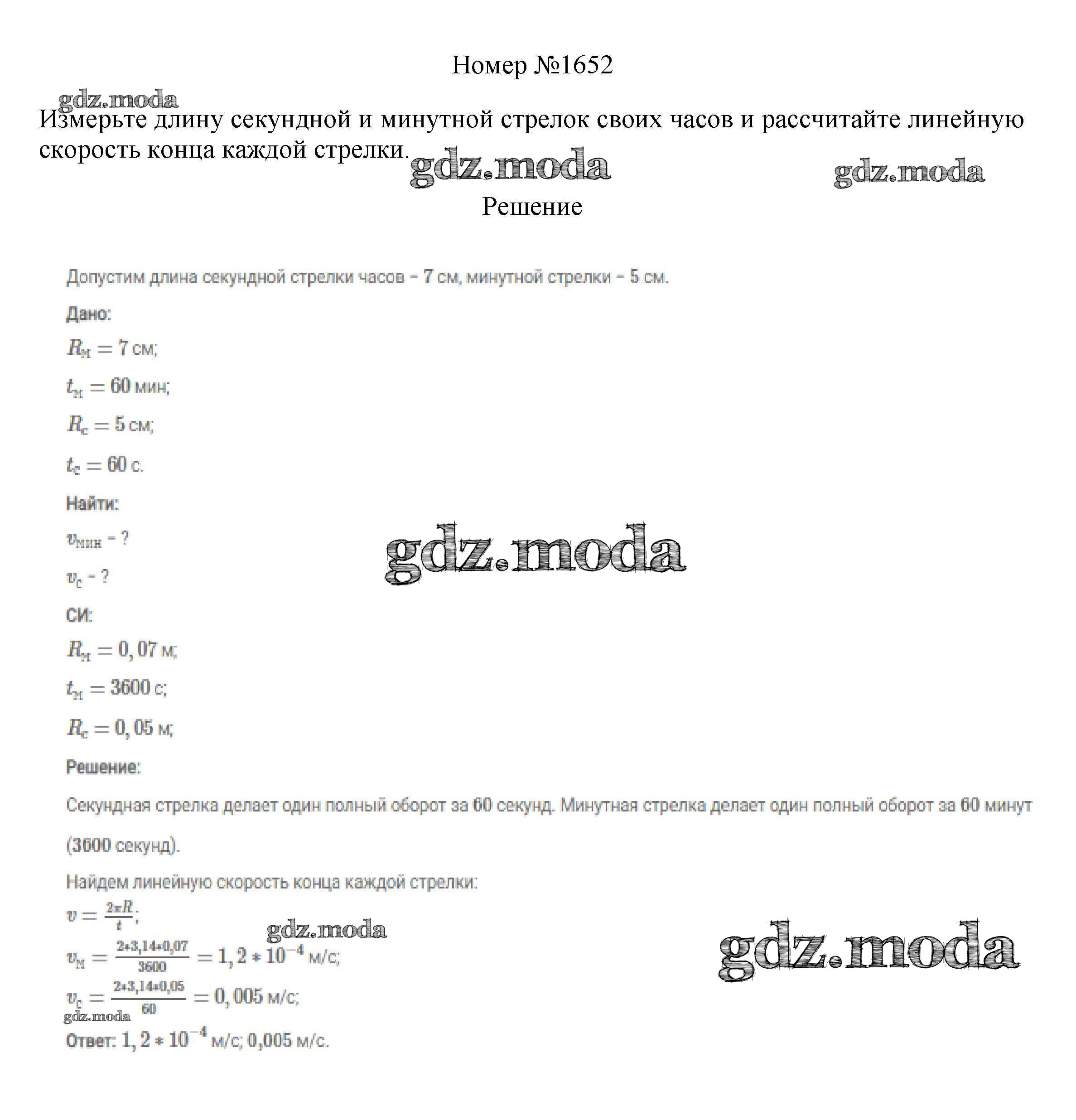 ОТВЕТ на задание № 1652 Сборник вопросов и задач по Физике 7-9 класс Марон Вертикаль