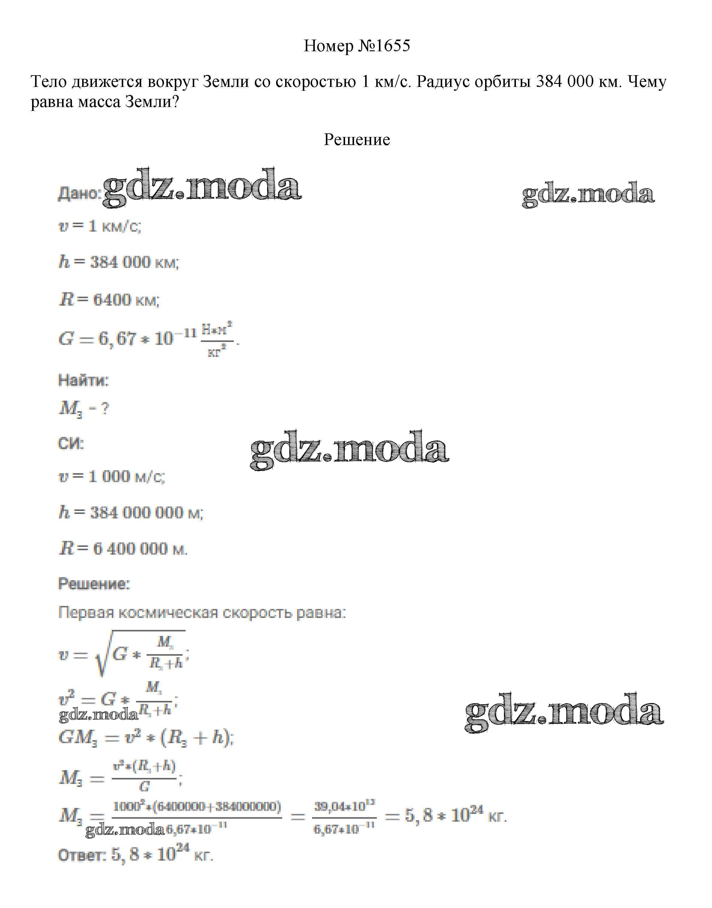 ГДЗ решение к заданию № 1655 Физика 7-9 классы сборник вопросов и задач Марон А.Е. Дрофа 2013 ФГОС бесплатно на гдз.мода!