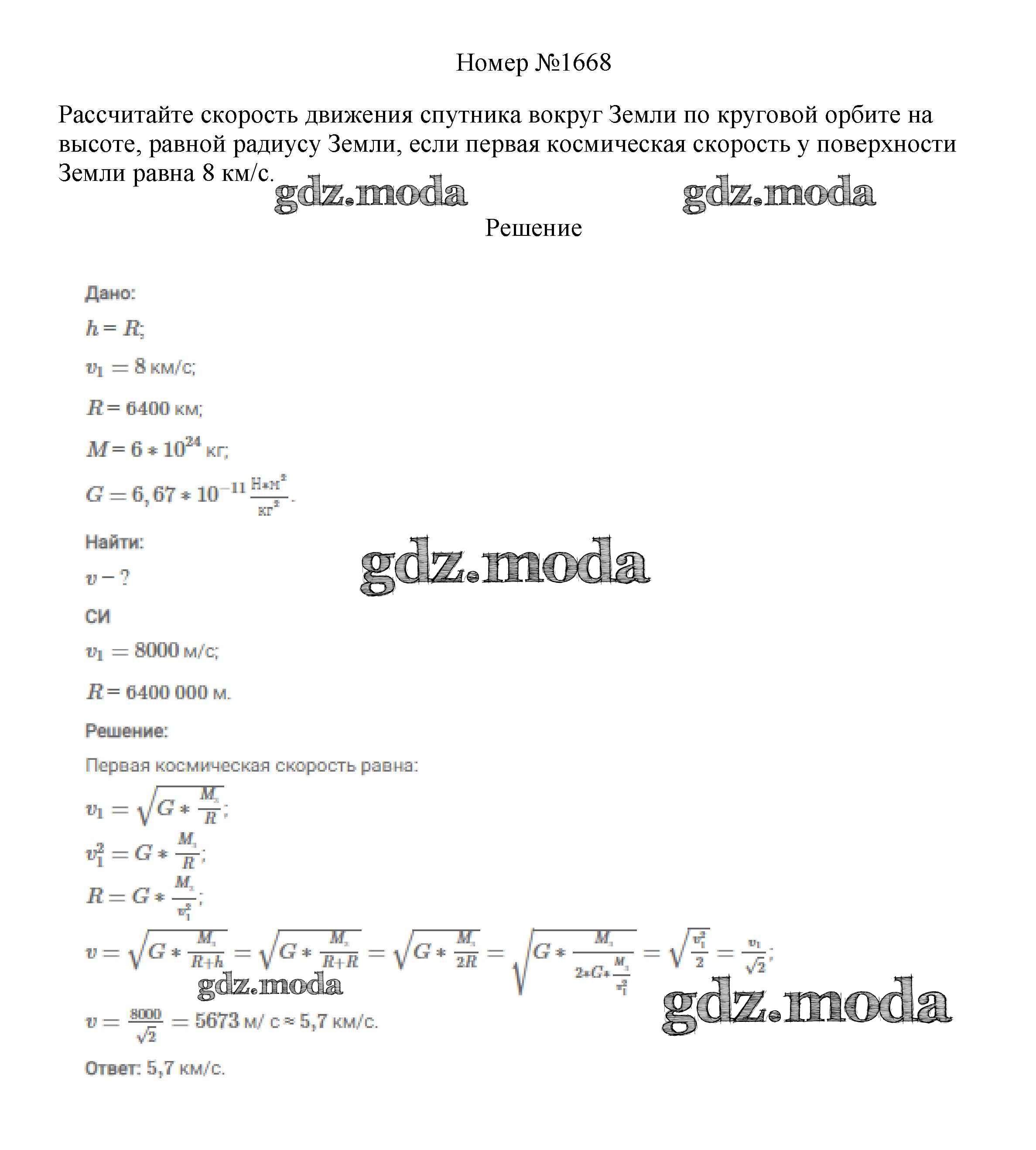 ГДЗ решение к заданию № 1668 Физика 7-9 классы сборник вопросов и задач Марон А.Е. Дрофа 2013 ФГОС бесплатно на гдз.мода!
