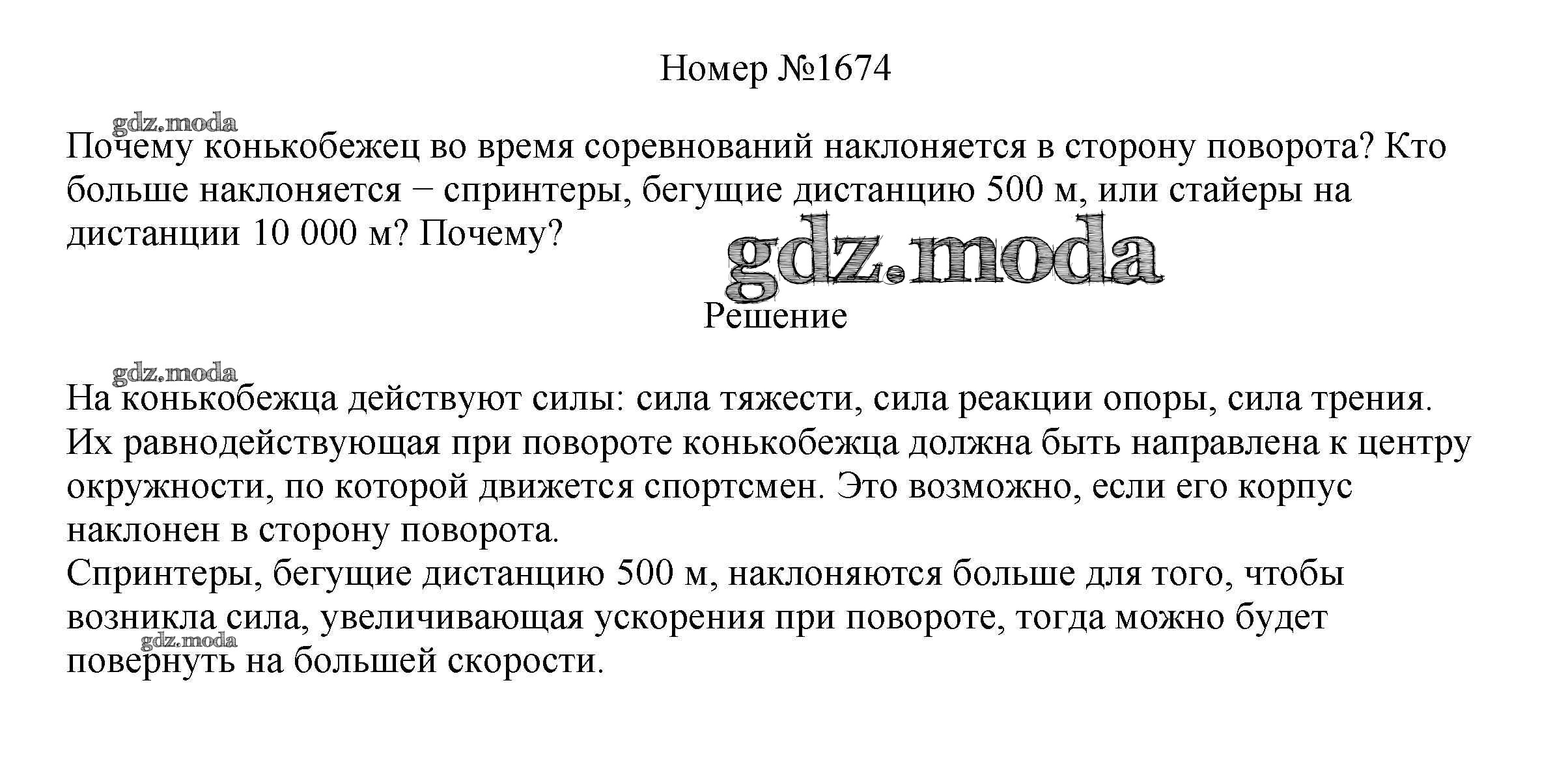 ОТВЕТ на задание № 1674 Сборник вопросов и задач по Физике 7-9 класс Марон Вертикаль
