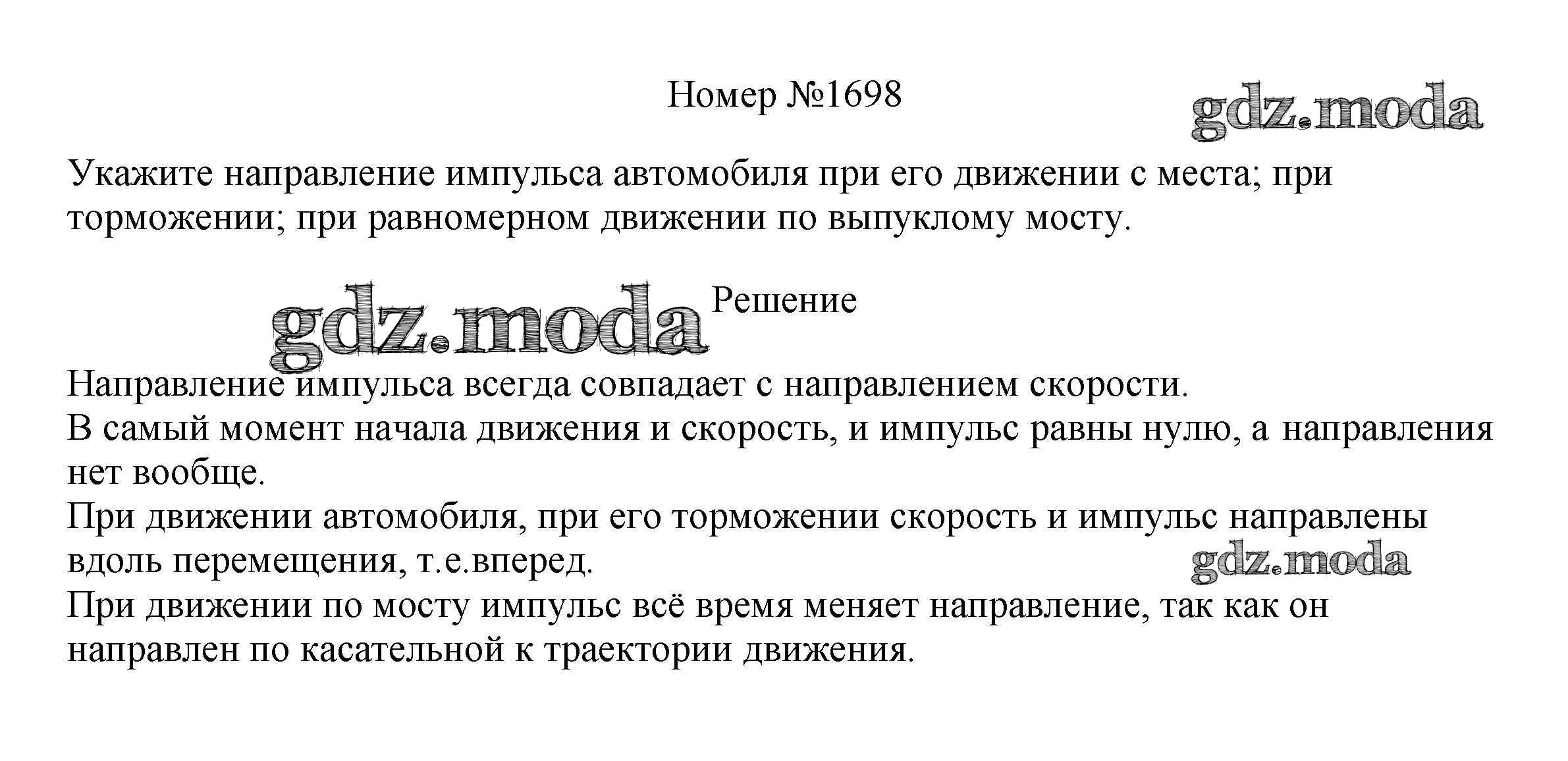 ОТВЕТ на задание № 1698 Сборник вопросов и задач по Физике 7-9 класс Марон Вертикаль