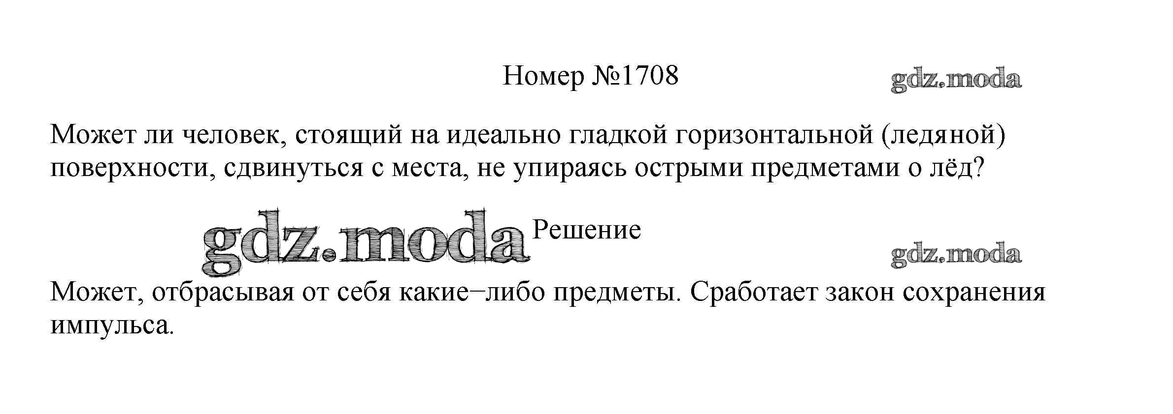 ОТВЕТ на задание № 1708 Сборник вопросов и задач по Физике 7-9 класс Марон Вертикаль