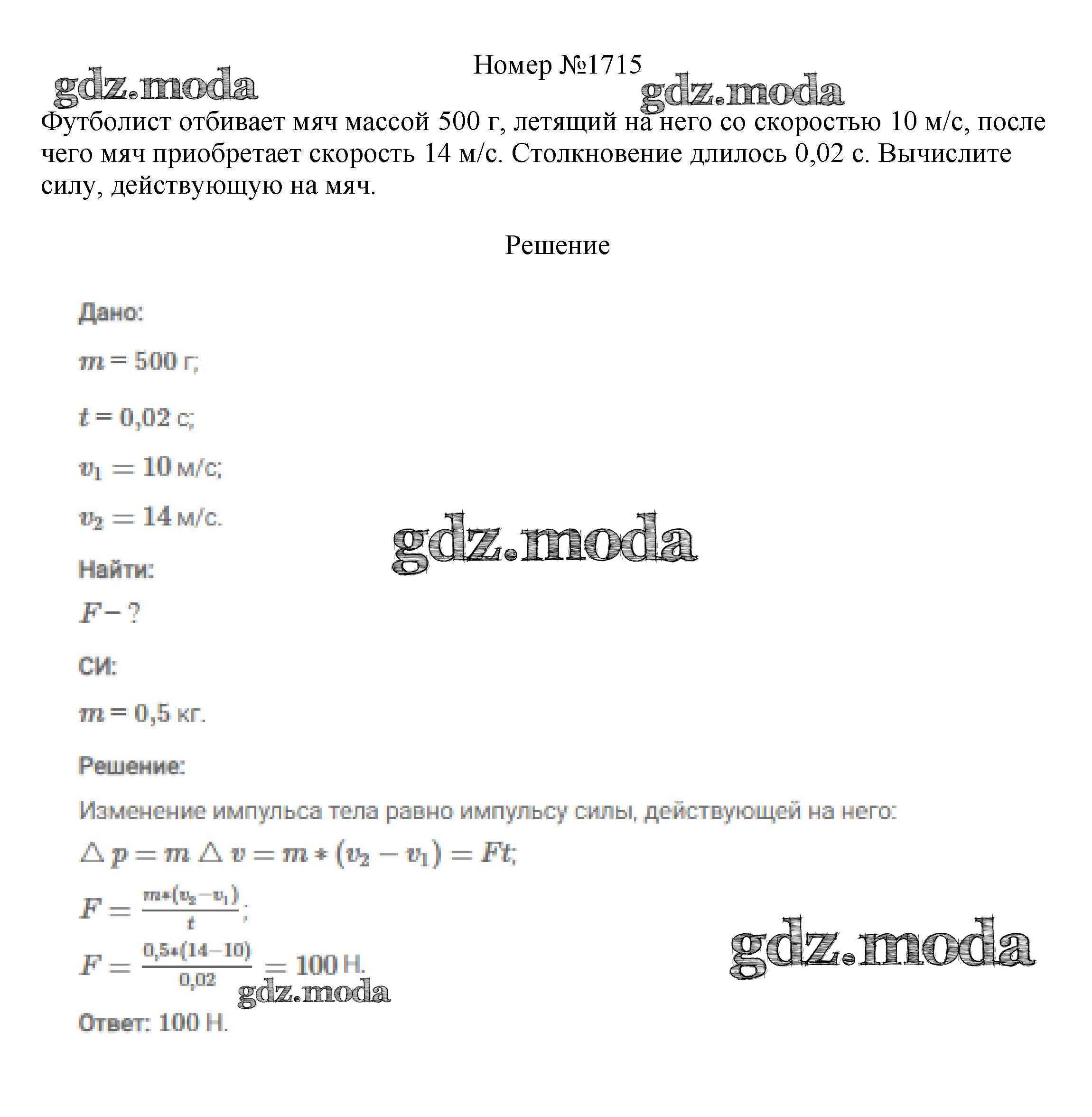 ОТВЕТ на задание № 1715 Сборник вопросов и задач по Физике 7-9 класс Марон Вертикаль