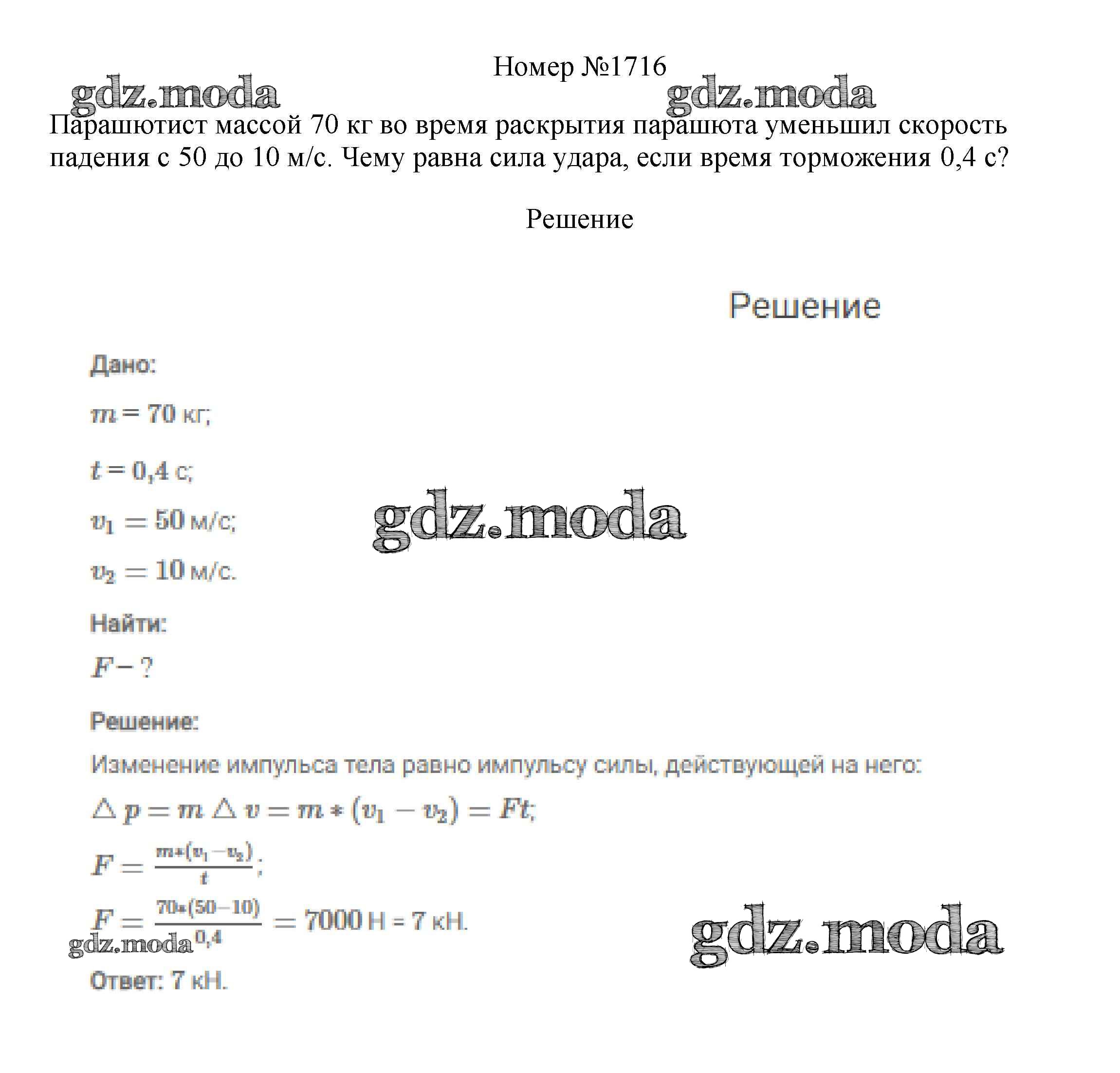 ОТВЕТ на задание № 1716 Сборник вопросов и задач по Физике 7-9 класс Марон Вертикаль