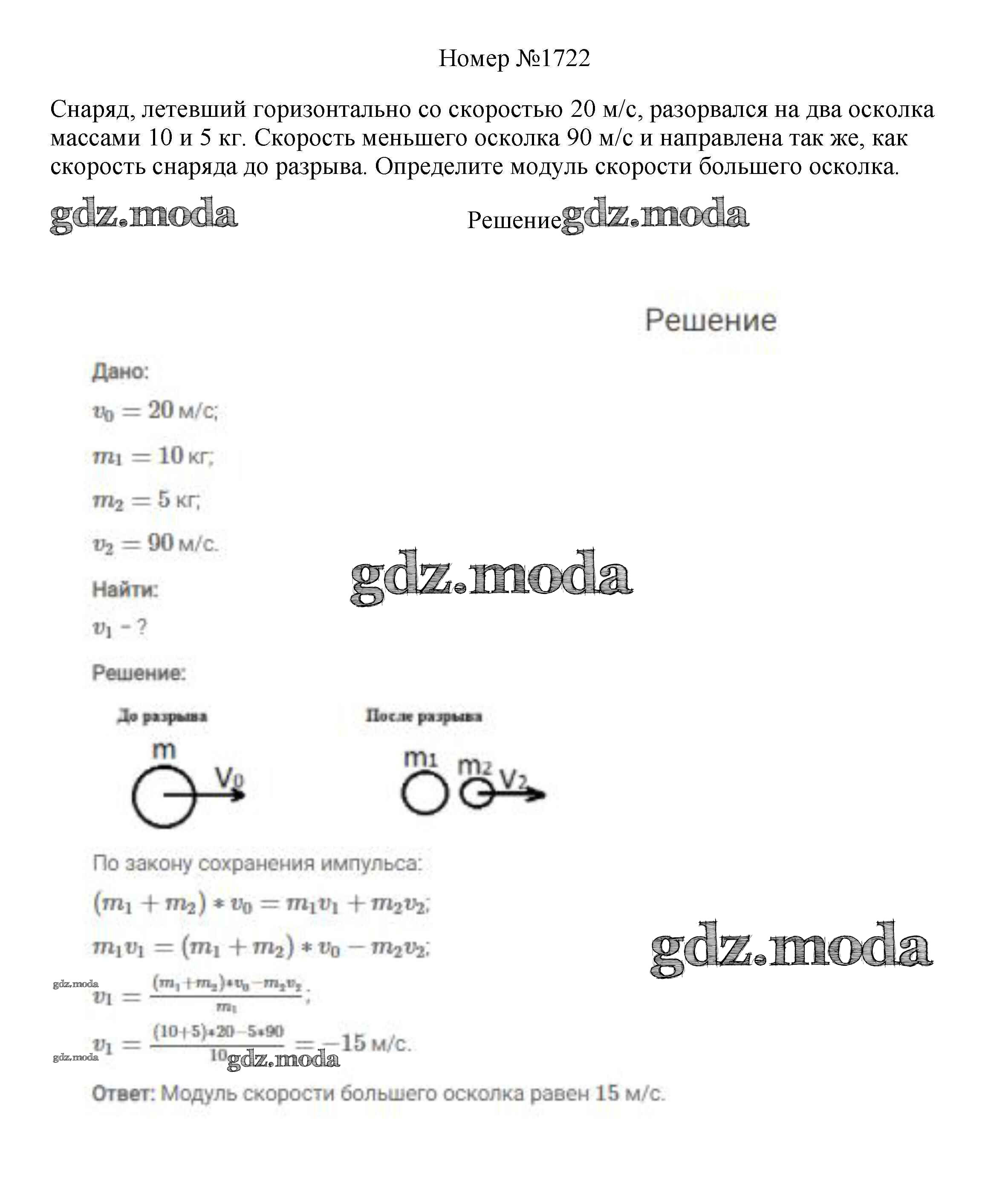 ОТВЕТ на задание № 1722 Сборник вопросов и задач по Физике 7-9 класс Марон Вертикаль