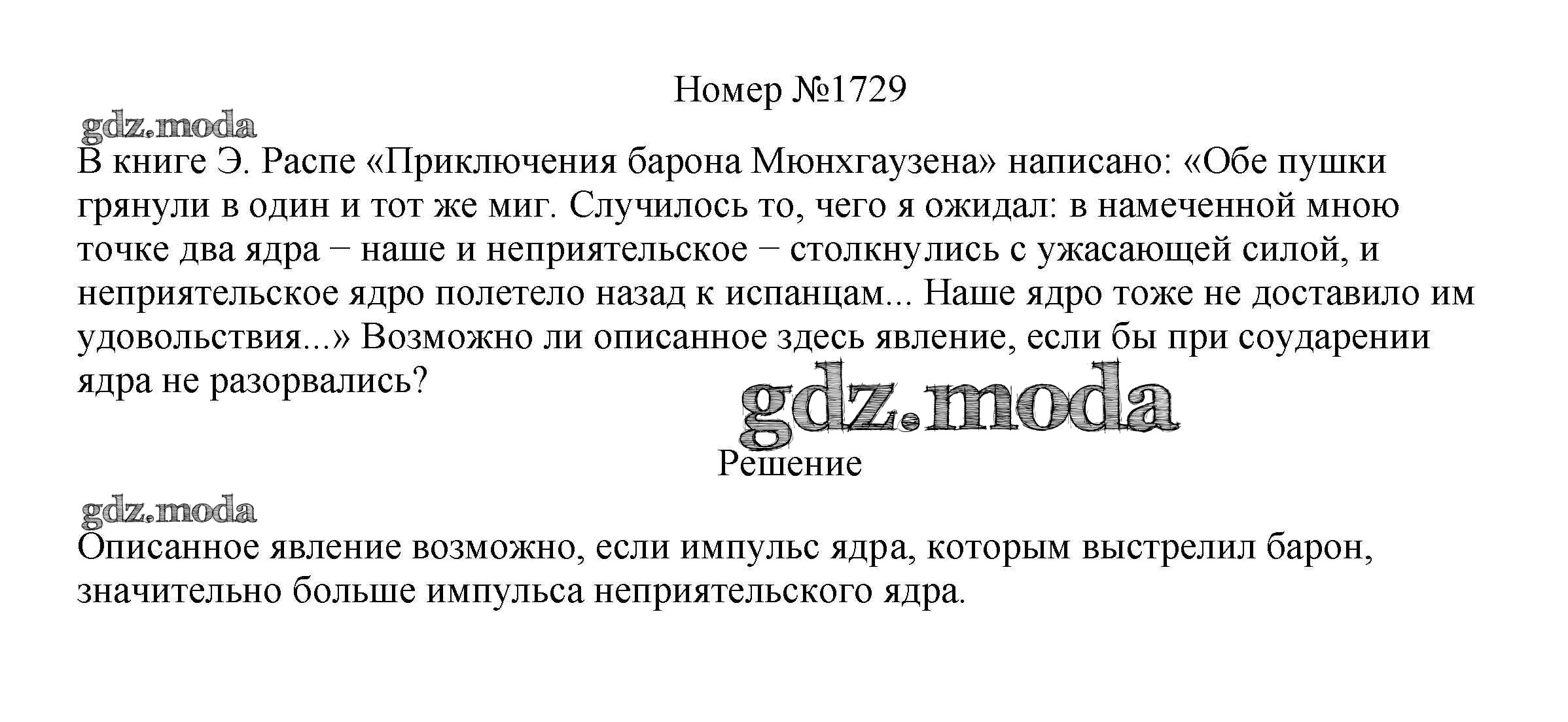 ОТВЕТ на задание № 1729 Сборник вопросов и задач по Физике 7-9 класс Марон Вертикаль