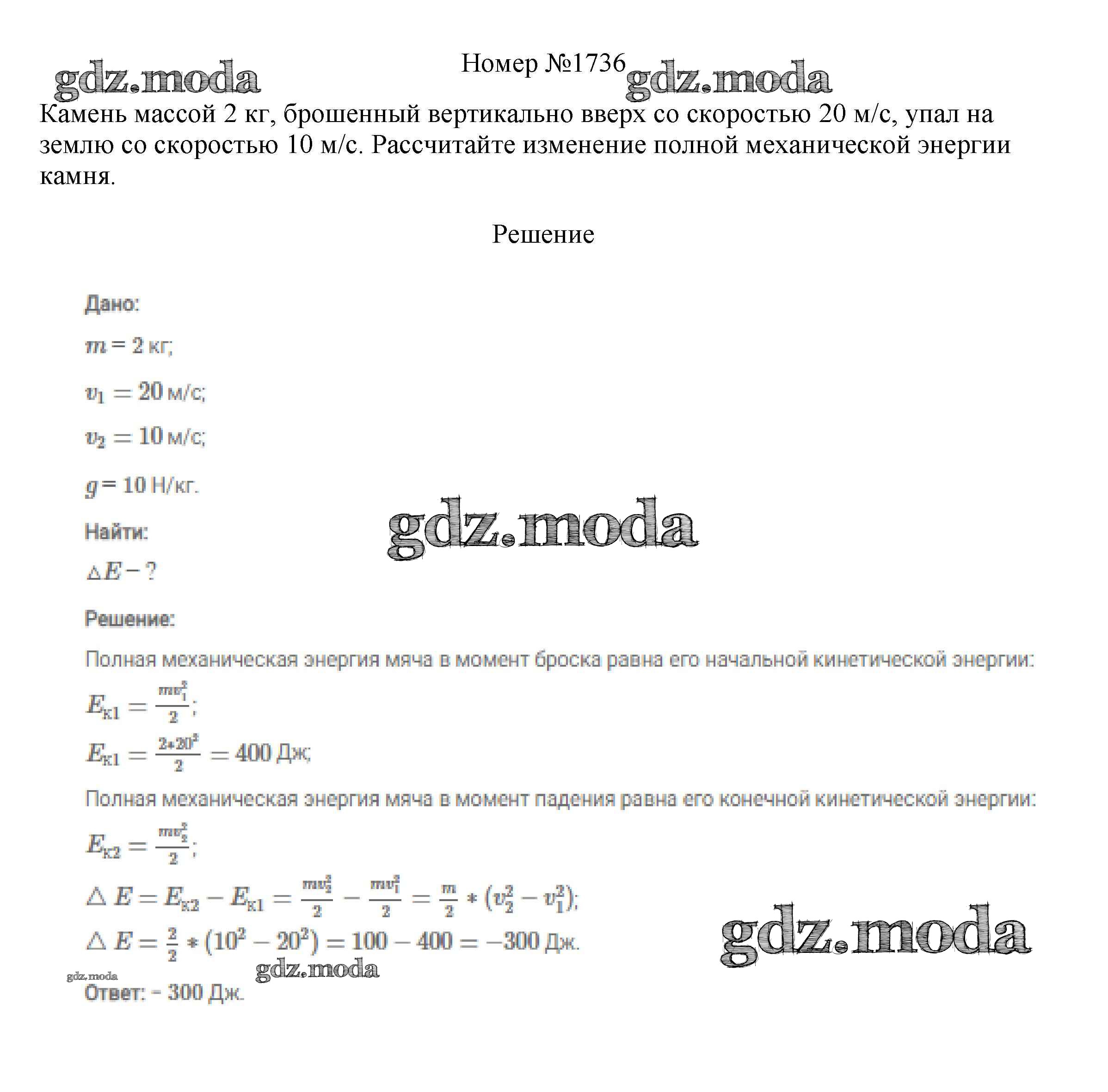 ОТВЕТ на задание № 1736 Сборник вопросов и задач по Физике 7-9 класс Марон Вертикаль