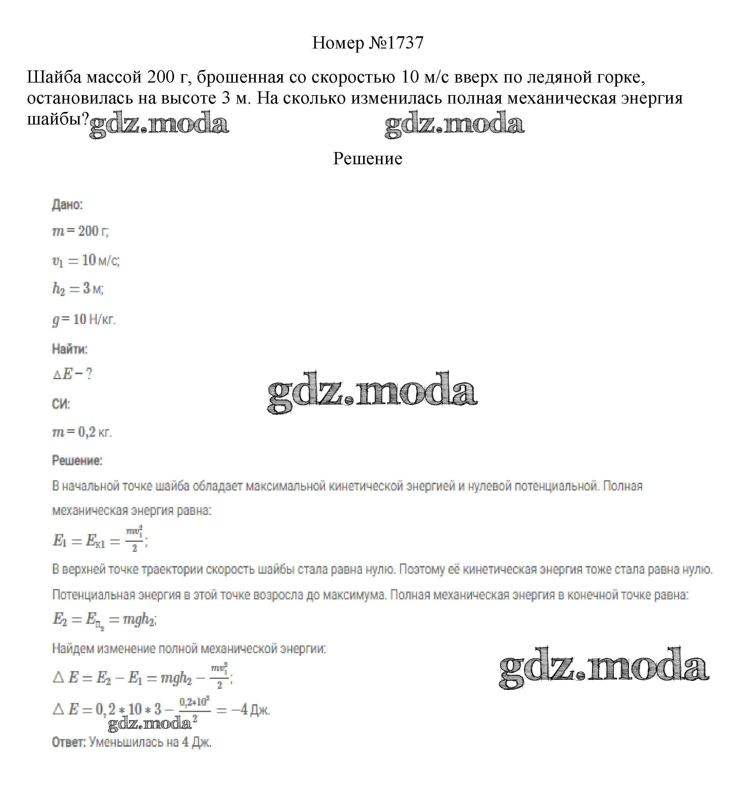 ОТВЕТ на задание № 1737 Сборник вопросов и задач по Физике 7-9 класс Марон Вертикаль