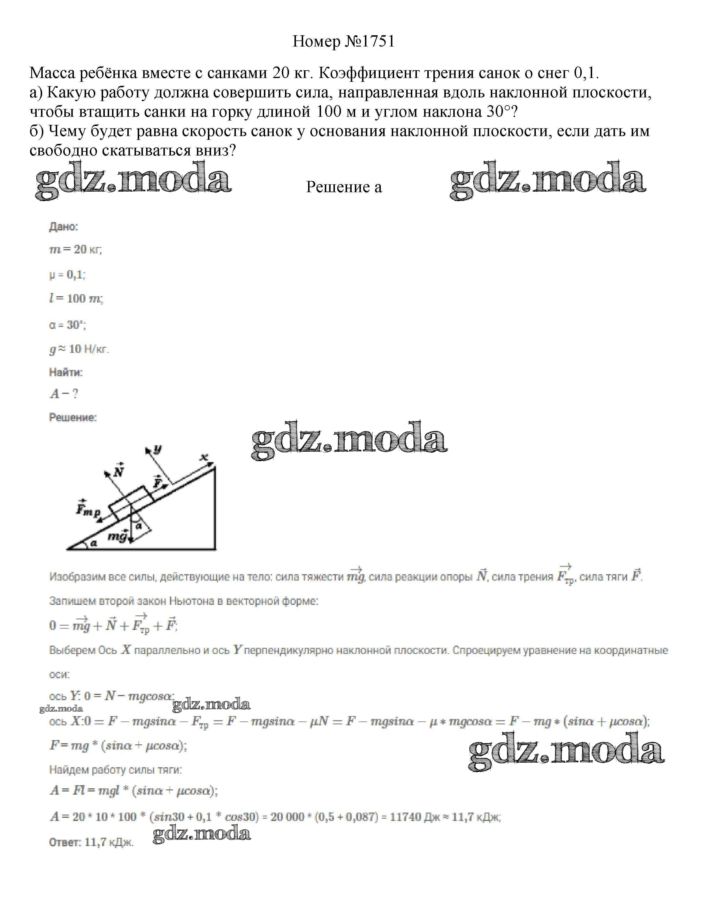 ОТВЕТ на задание № 1751 Сборник вопросов и задач по Физике 7-9 класс Марон Вертикаль