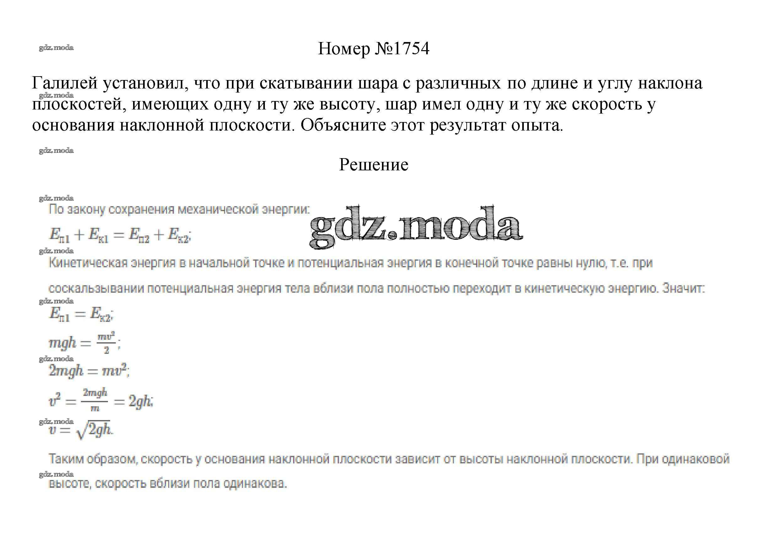ОТВЕТ на задание № 1754 Сборник вопросов и задач по Физике 7-9 класс Марон Вертикаль