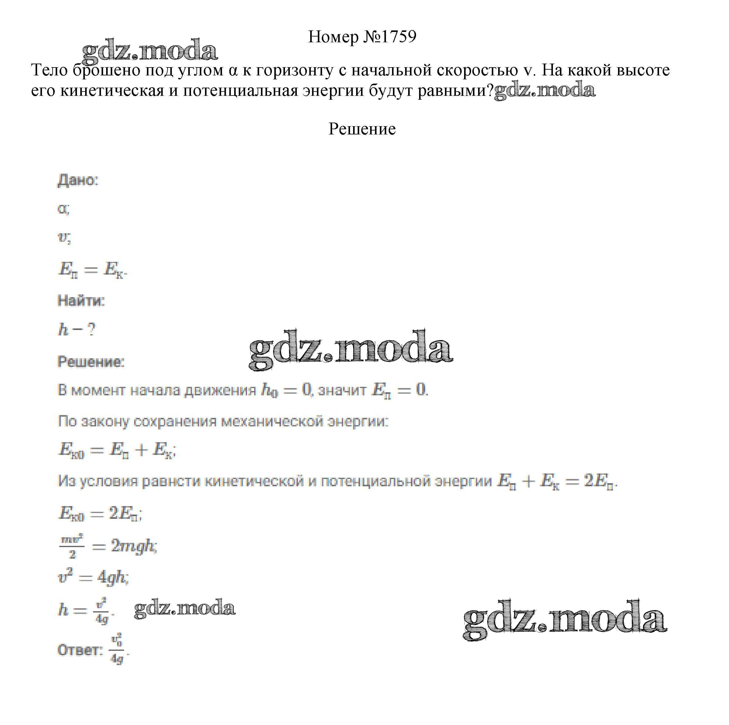 ОТВЕТ на задание № 1759 Сборник вопросов и задач по Физике 7-9 класс Марон Вертикаль