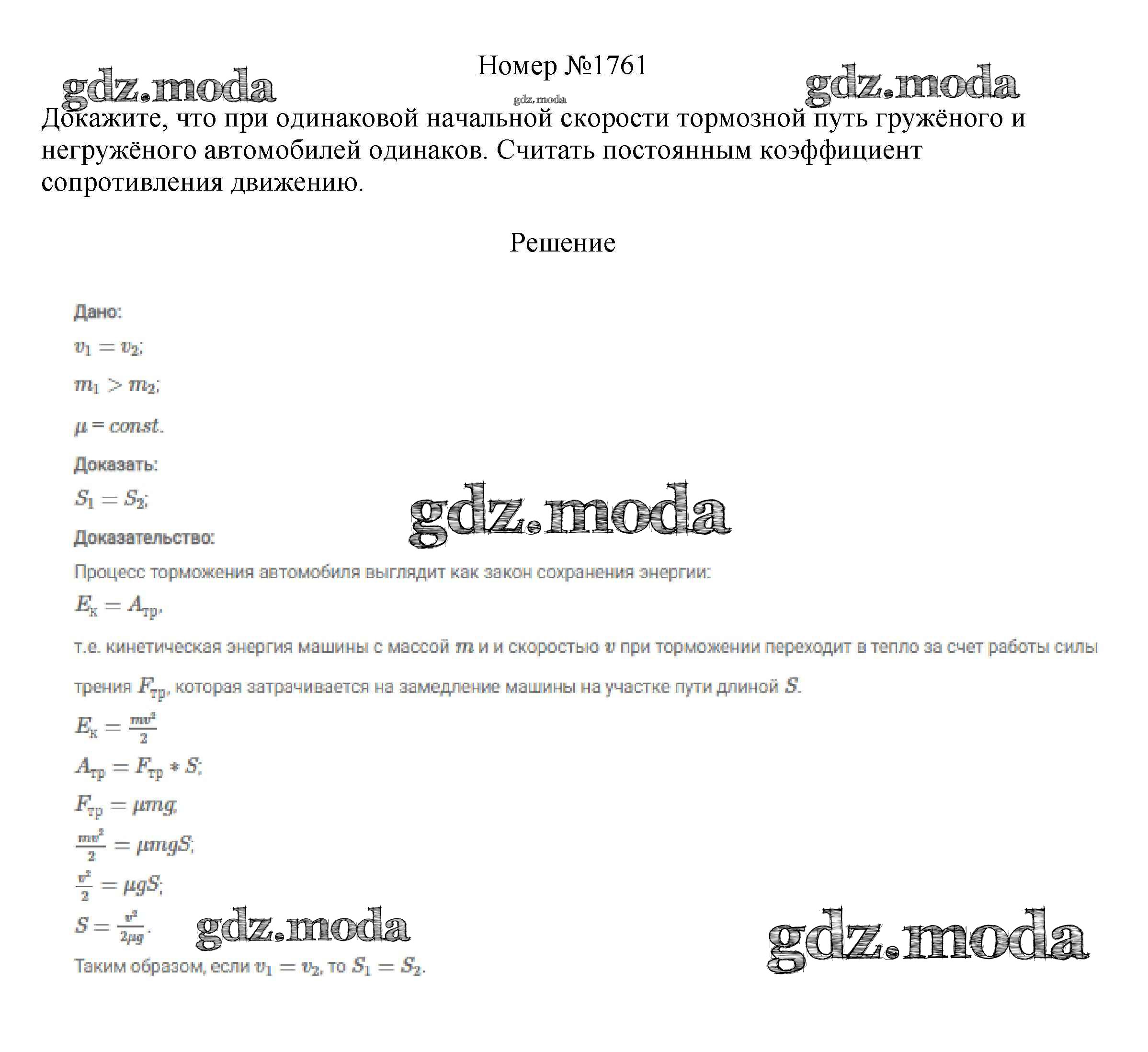 ОТВЕТ на задание № 1761 Сборник вопросов и задач по Физике 7-9 класс Марон Вертикаль