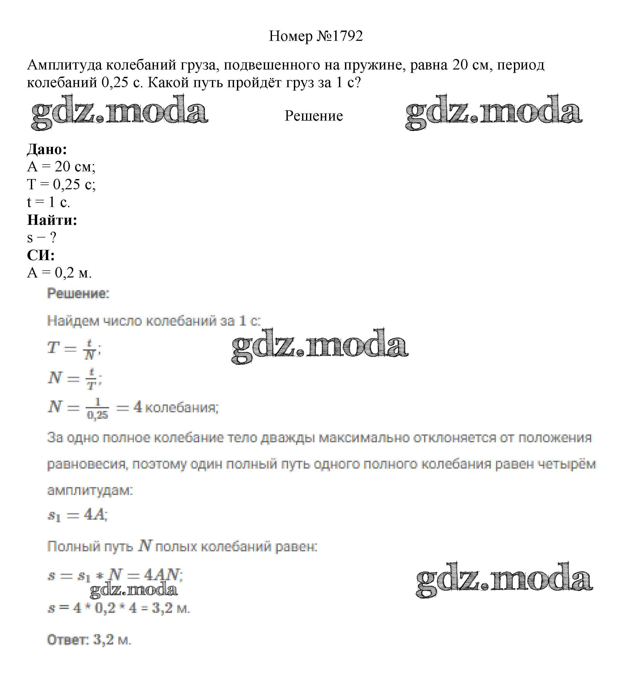 ОТВЕТ на задание № 1792 Сборник вопросов и задач по Физике 7-9 класс Марон Вертикаль