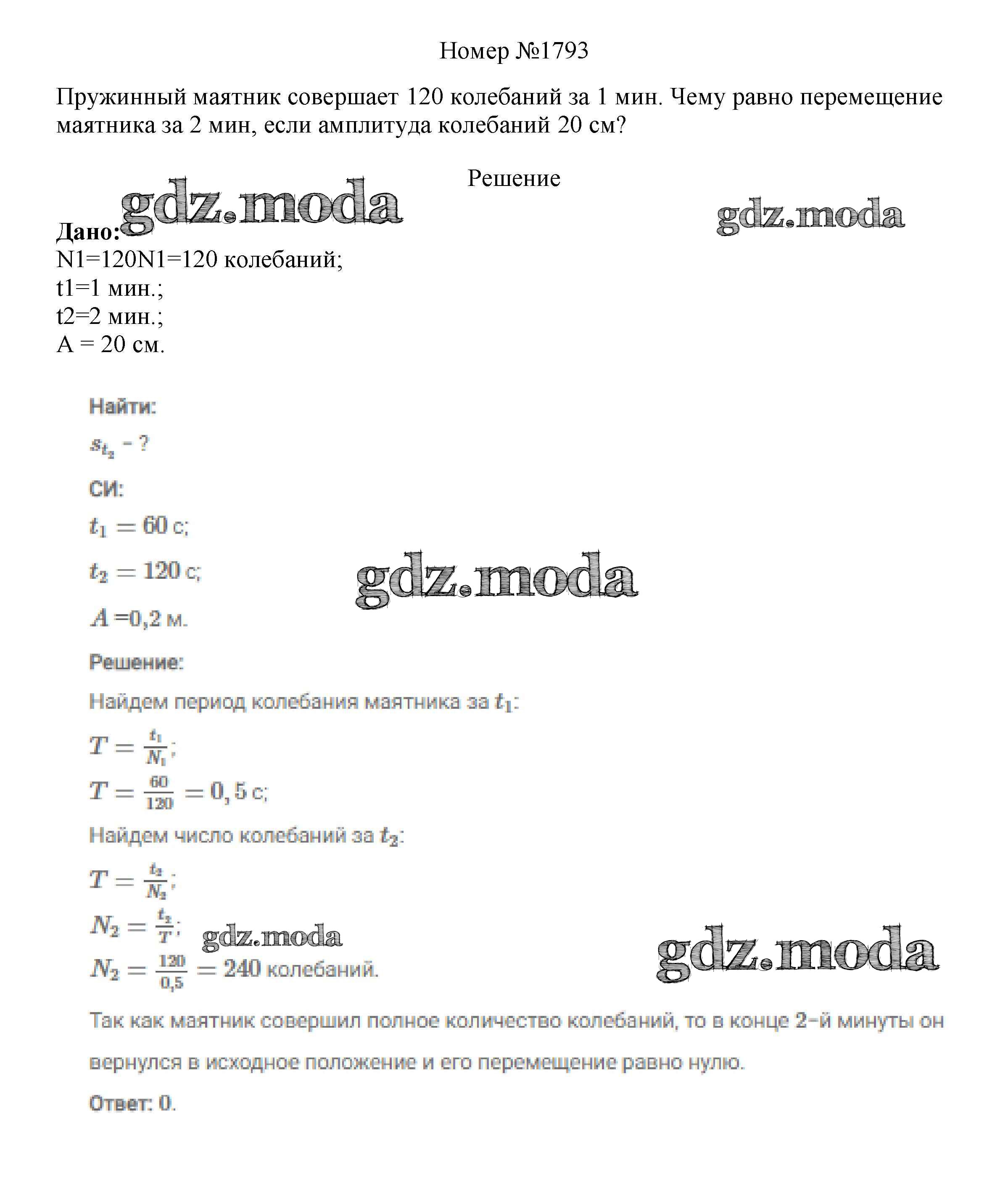 ОТВЕТ на задание № 1793 Сборник вопросов и задач по Физике 7-9 класс Марон Вертикаль