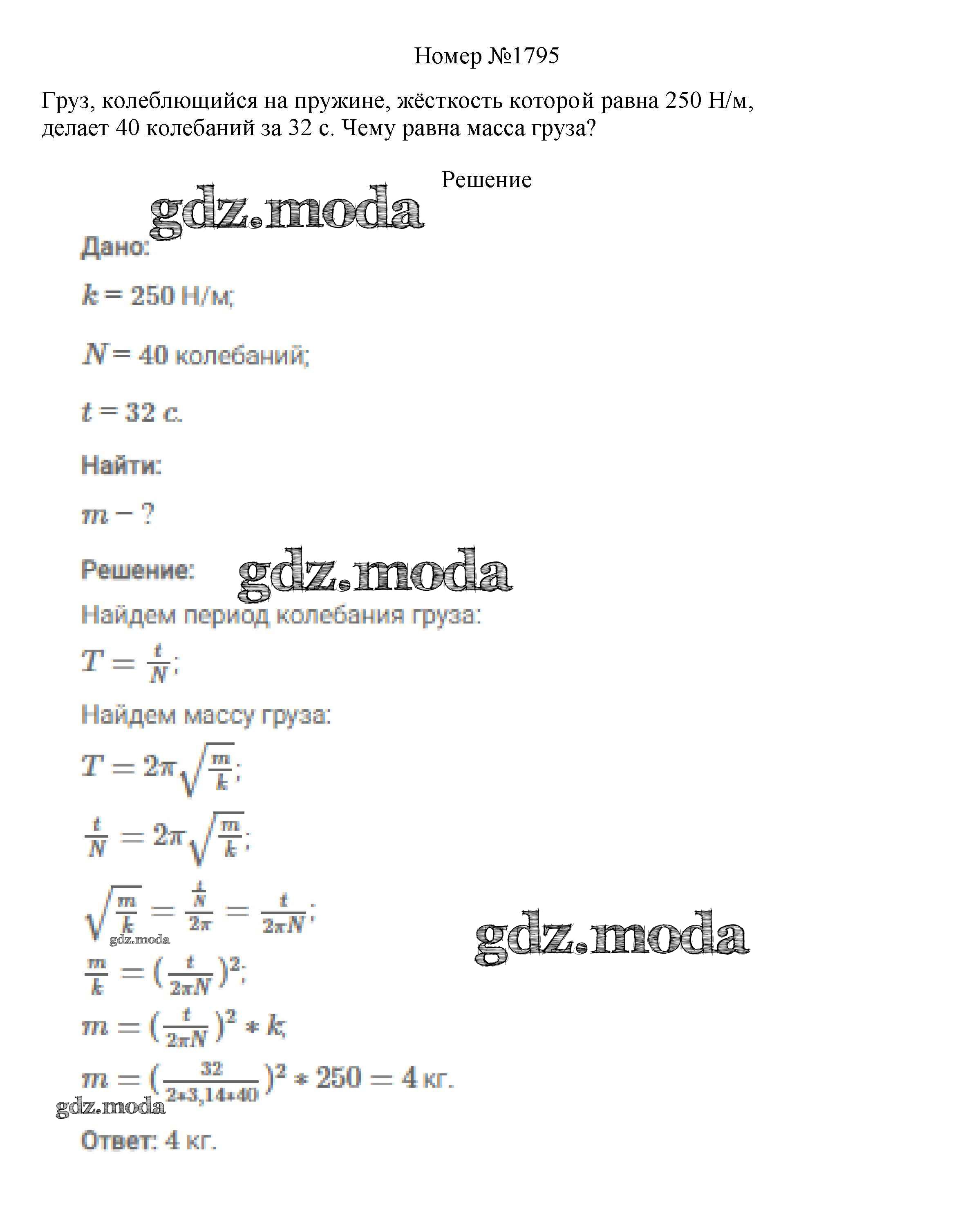 ОТВЕТ на задание № 1795 Сборник вопросов и задач по Физике 7-9 класс Марон Вертикаль
