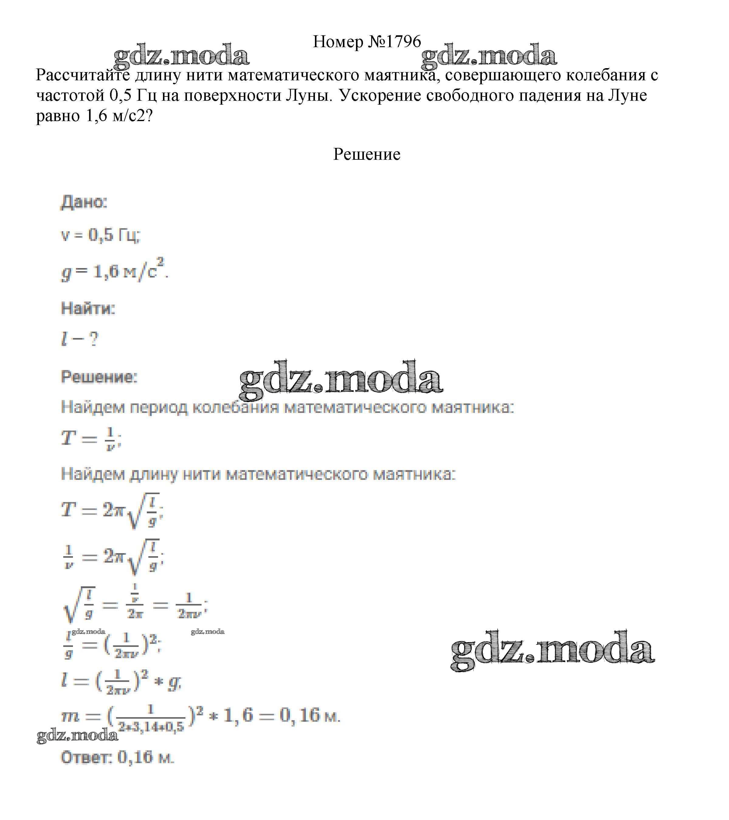 ГДЗ решение к заданию № 1796 Физика 7-9 классы сборник вопросов и задач Марон А.Е. Дрофа 2013 ФГОС бесплатно на гдз.мода!
