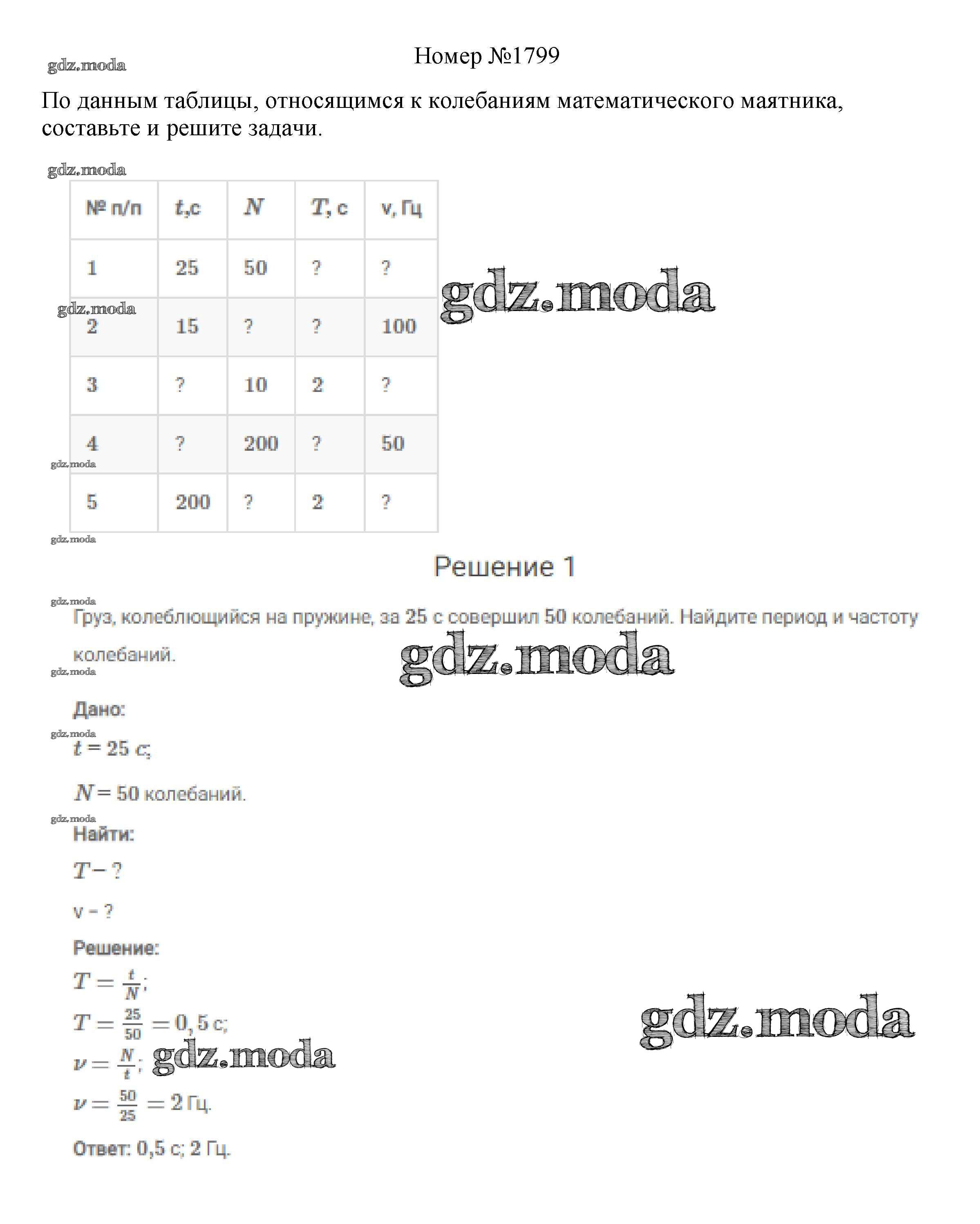 ОТВЕТ на задание № 1799 Сборник вопросов и задач по Физике 7-9 класс Марон Вертикаль