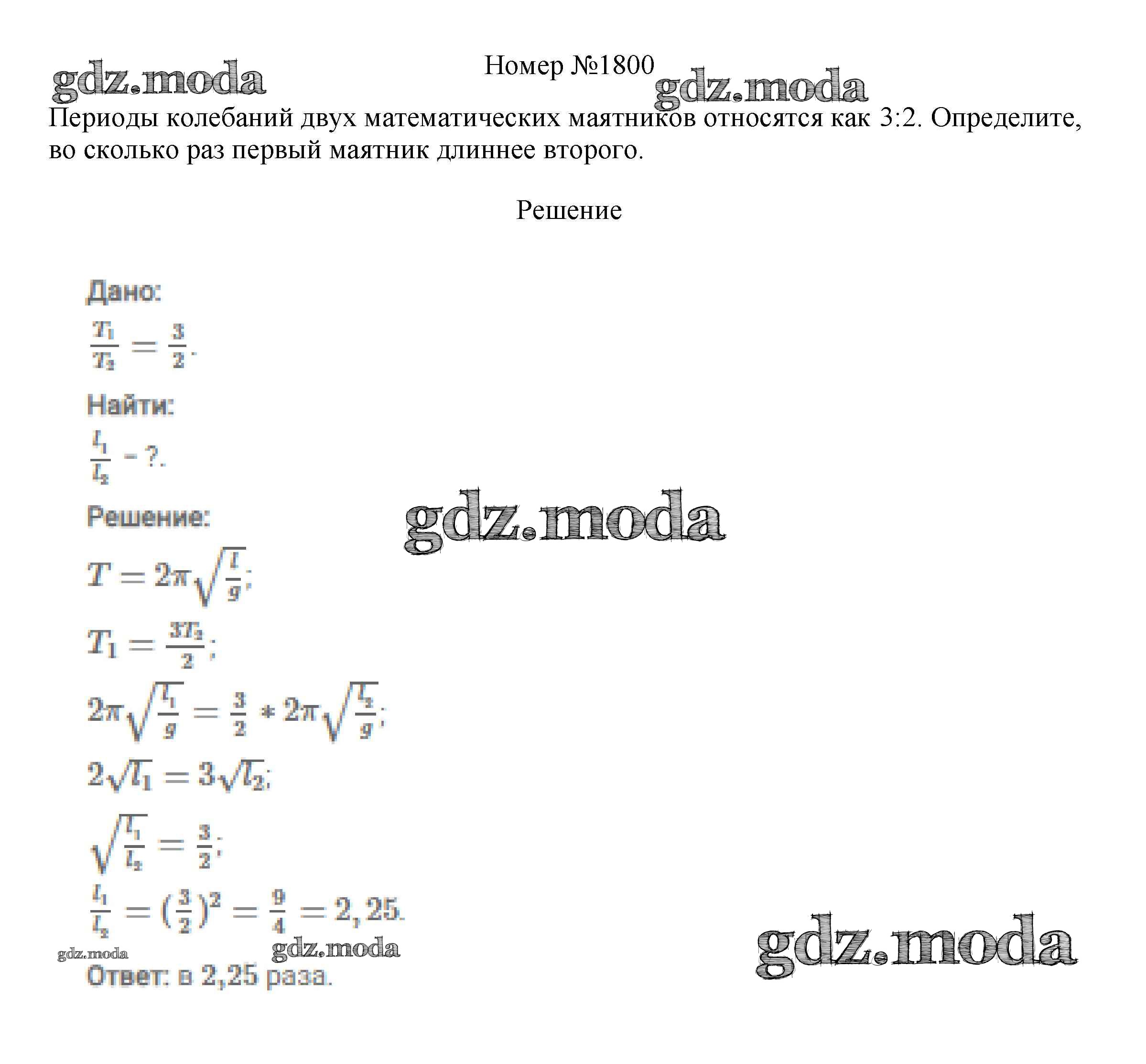 ГДЗ решение к заданию № 1800 Физика 7-9 классы сборник вопросов и задач Марон А.Е. Дрофа 2013 ФГОС бесплатно на гдз.мода!