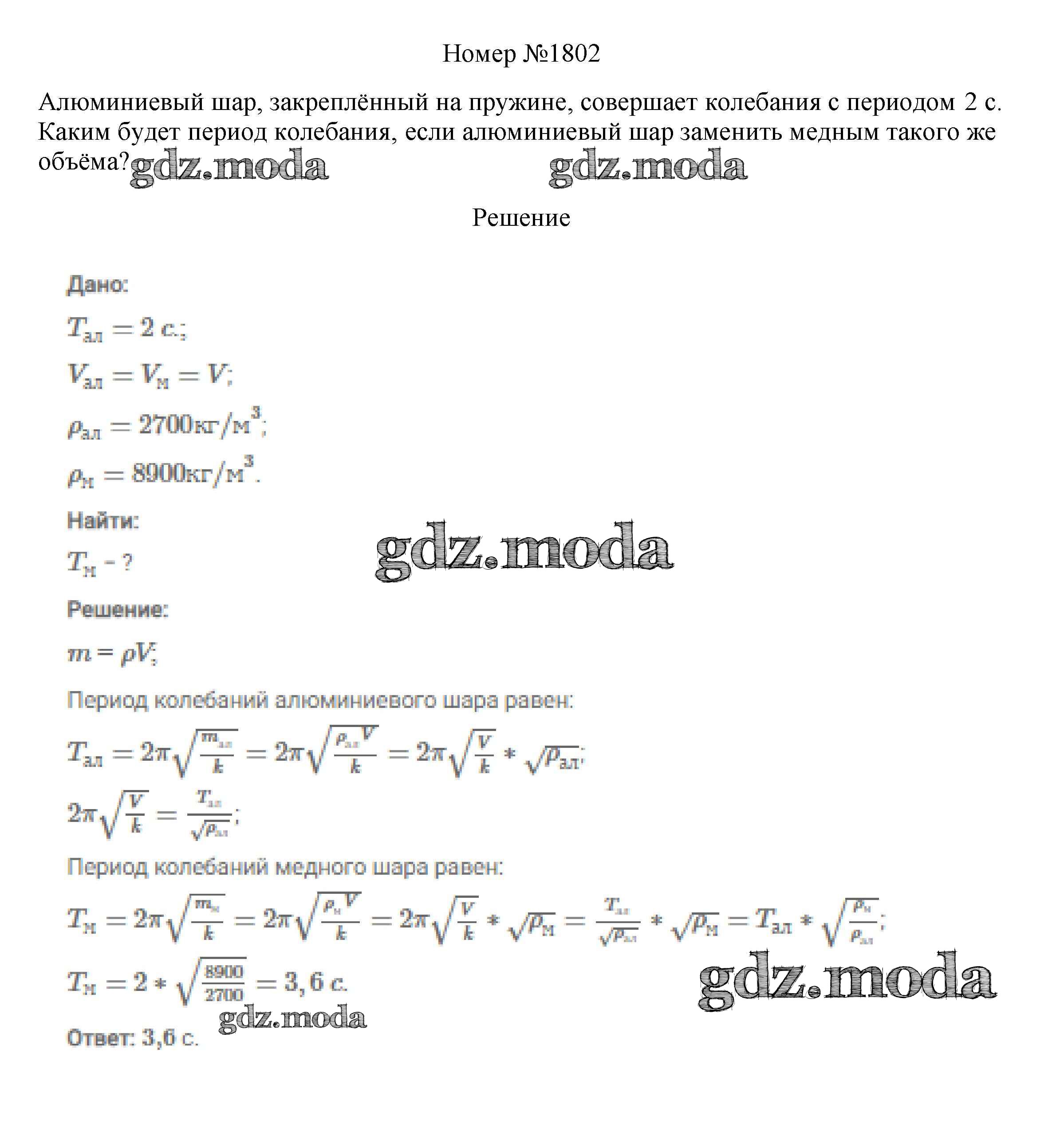 ОТВЕТ на задание № 1802 Сборник вопросов и задач по Физике 7-9 класс Марон Вертикаль