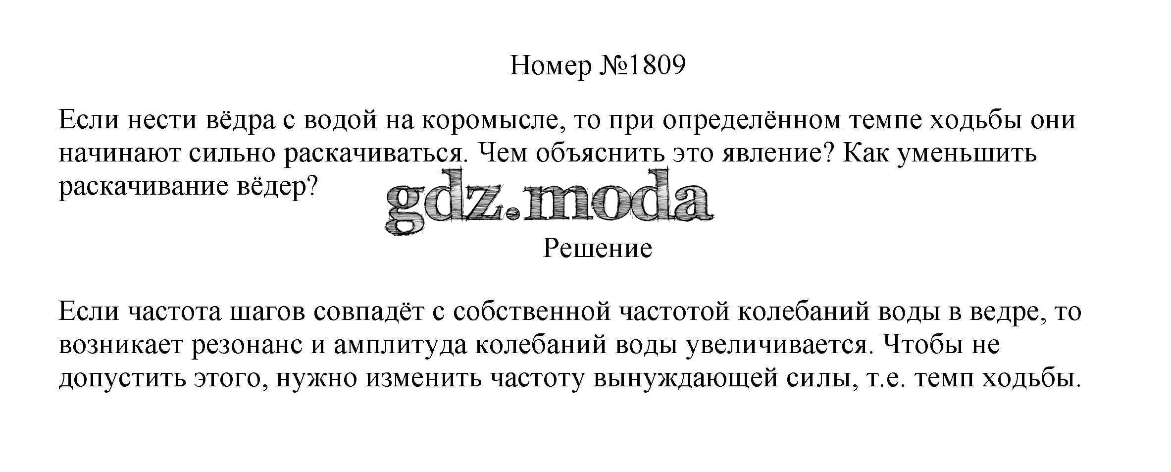 ОТВЕТ на задание № 1809 Сборник вопросов и задач по Физике 7-9 класс Марон Вертикаль