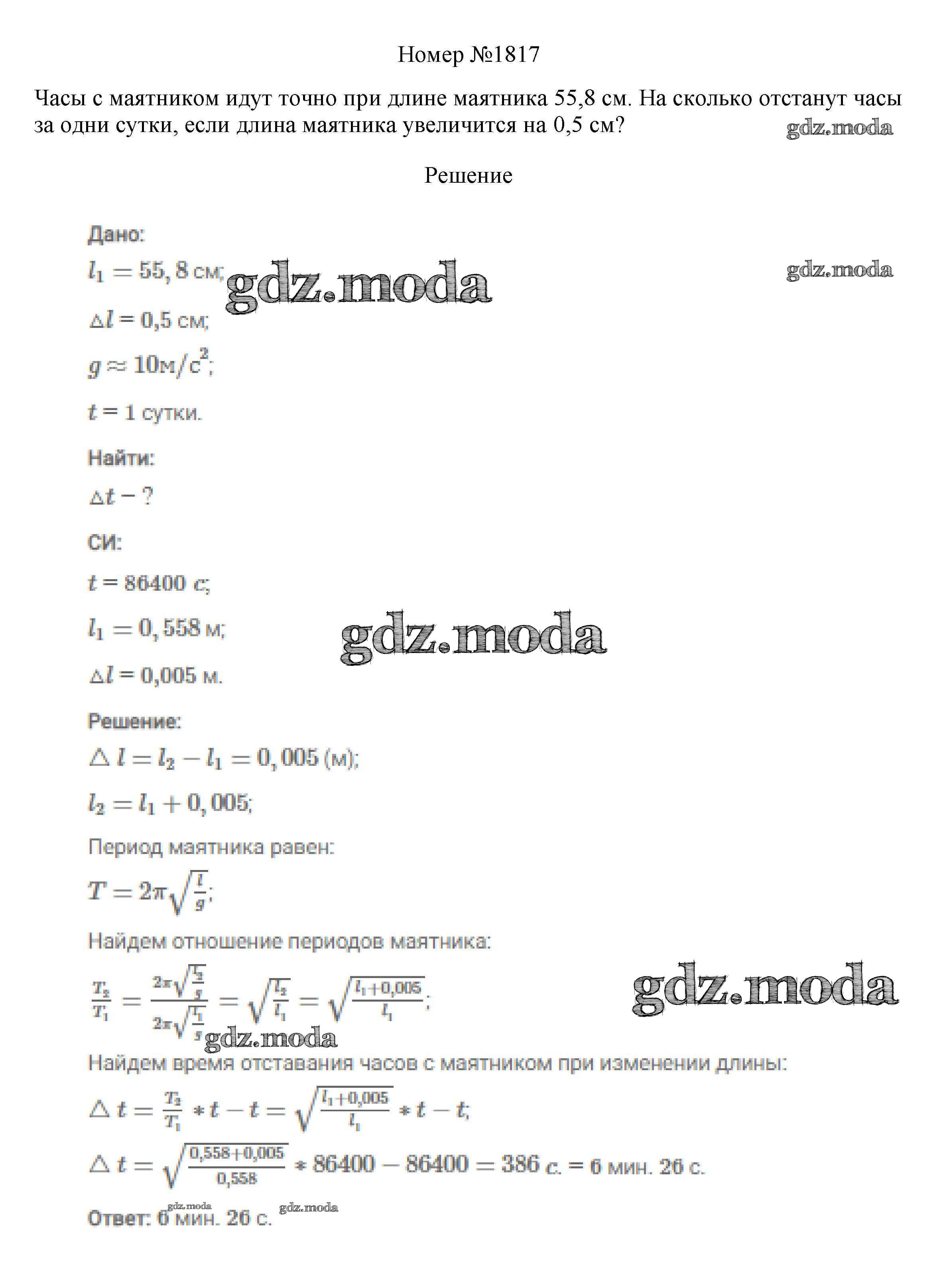 ОТВЕТ на задание № 1817 Сборник вопросов и задач по Физике 7-9 класс Марон Вертикаль