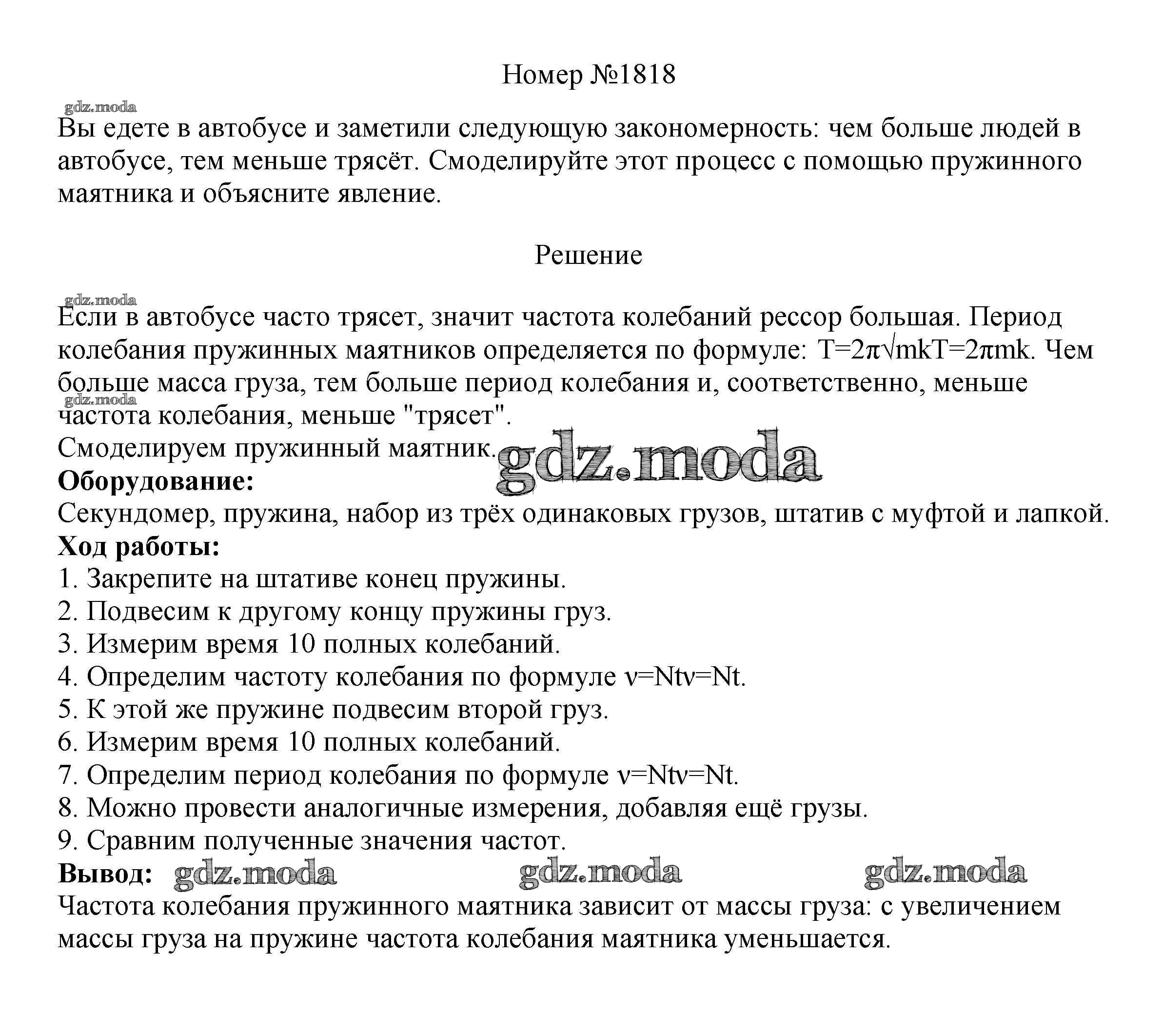 ОТВЕТ на задание № 1818 Сборник вопросов и задач по Физике 7-9 класс Марон Вертикаль