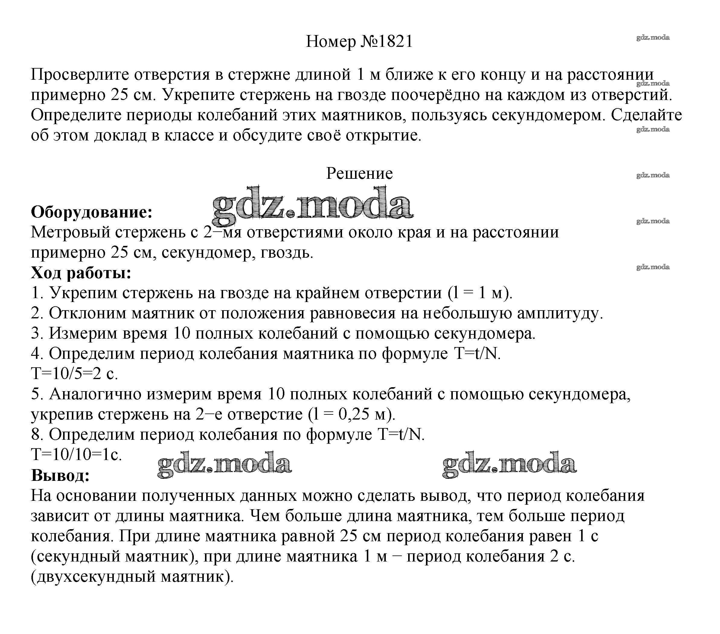 ОТВЕТ на задание № 1821 Сборник вопросов и задач по Физике 7-9 класс Марон Вертикаль