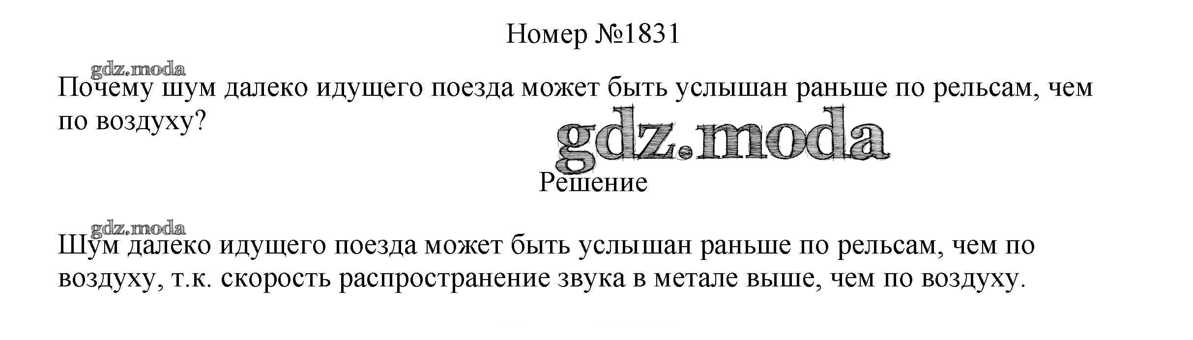 ОТВЕТ на задание № 1831 Сборник вопросов и задач по Физике 7-9 класс Марон Вертикаль