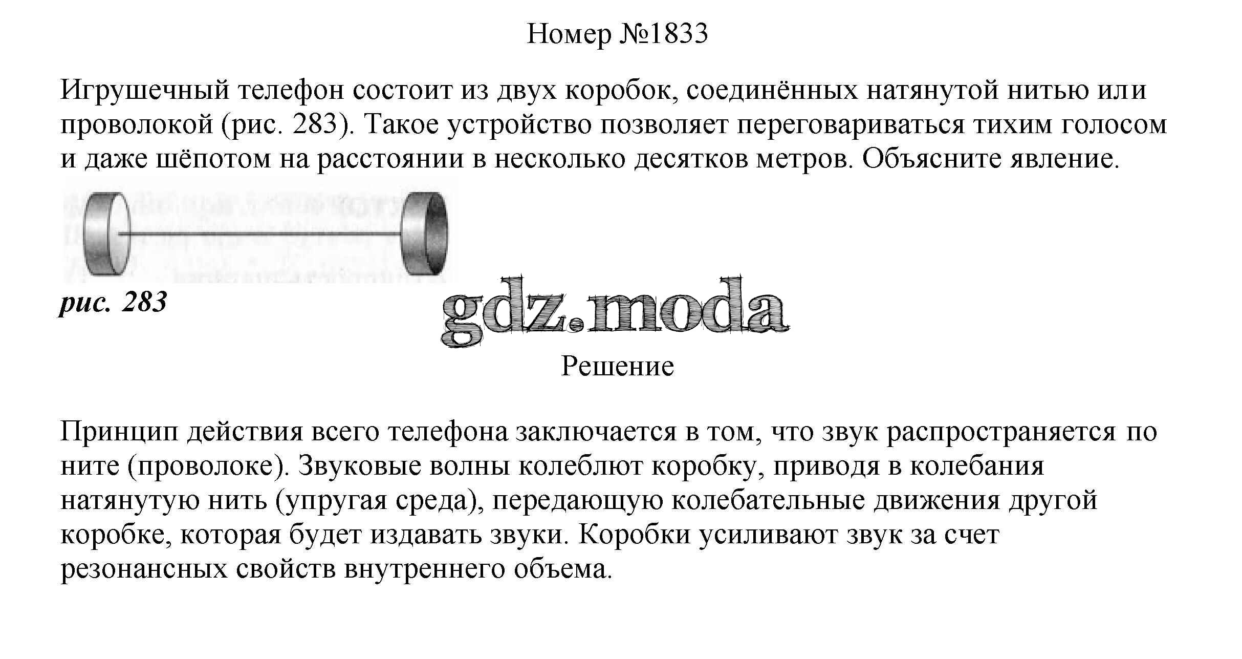 ГДЗ решение к заданию № 1833 Физика 7-9 классы сборник вопросов и задач Марон А.Е. Дрофа 2013 ФГОС бесплатно на гдз.мода!