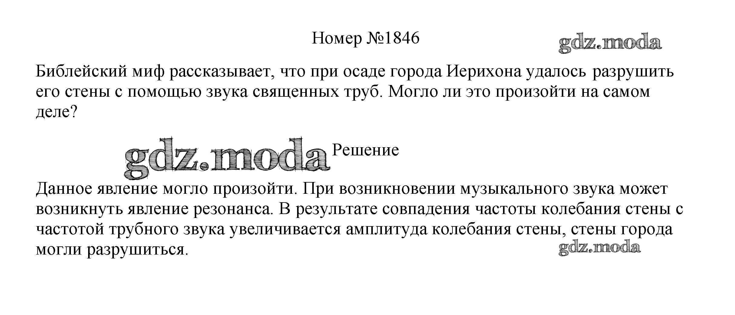 ГДЗ решение к заданию № 1846 Физика 7-9 классы сборник вопросов и задач Марон А.Е. Дрофа 2013 ФГОС бесплатно на гдз.мода!