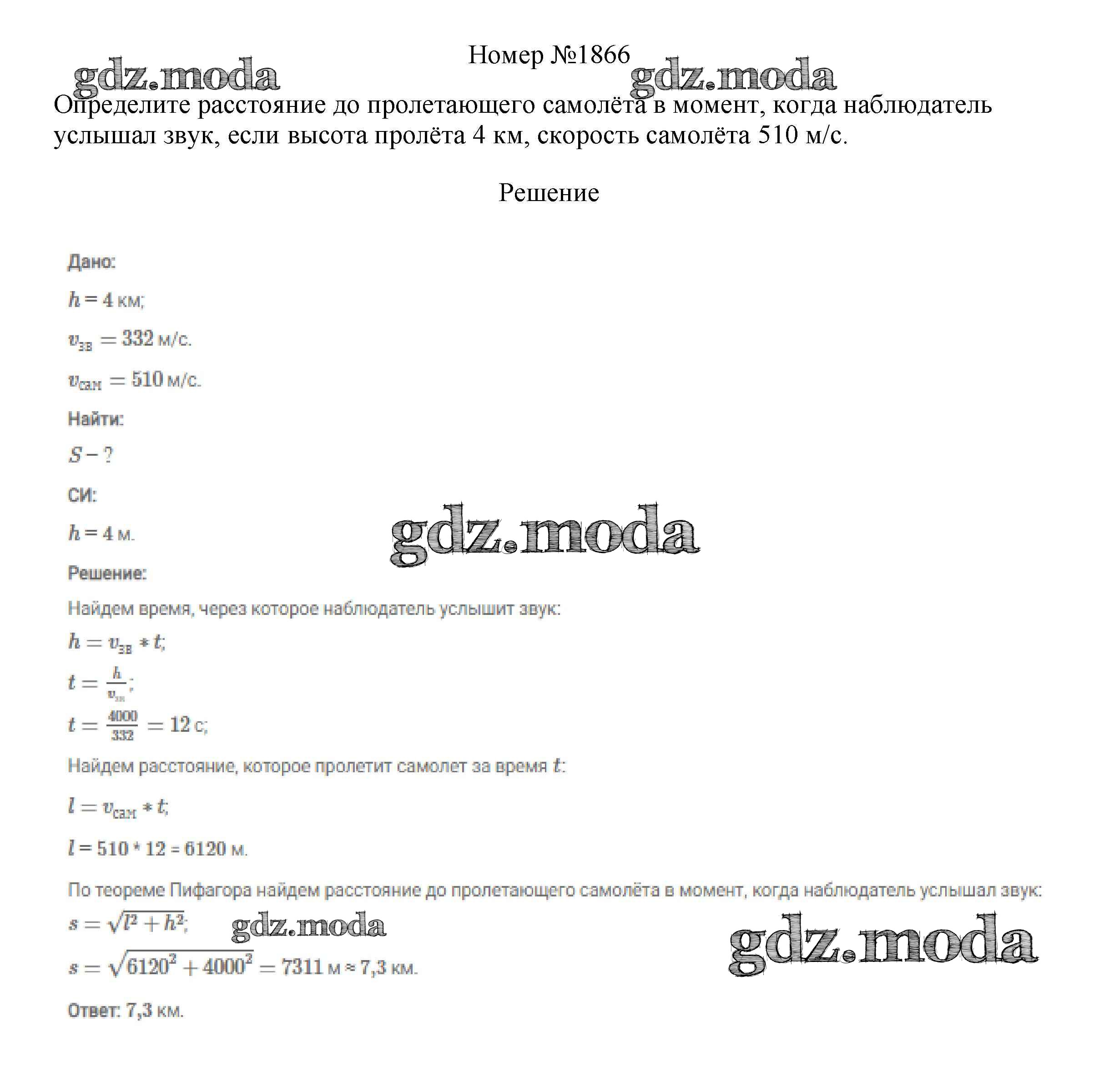 ОТВЕТ на задание № 1866 Сборник вопросов и задач по Физике 7-9 класс Марон Вертикаль